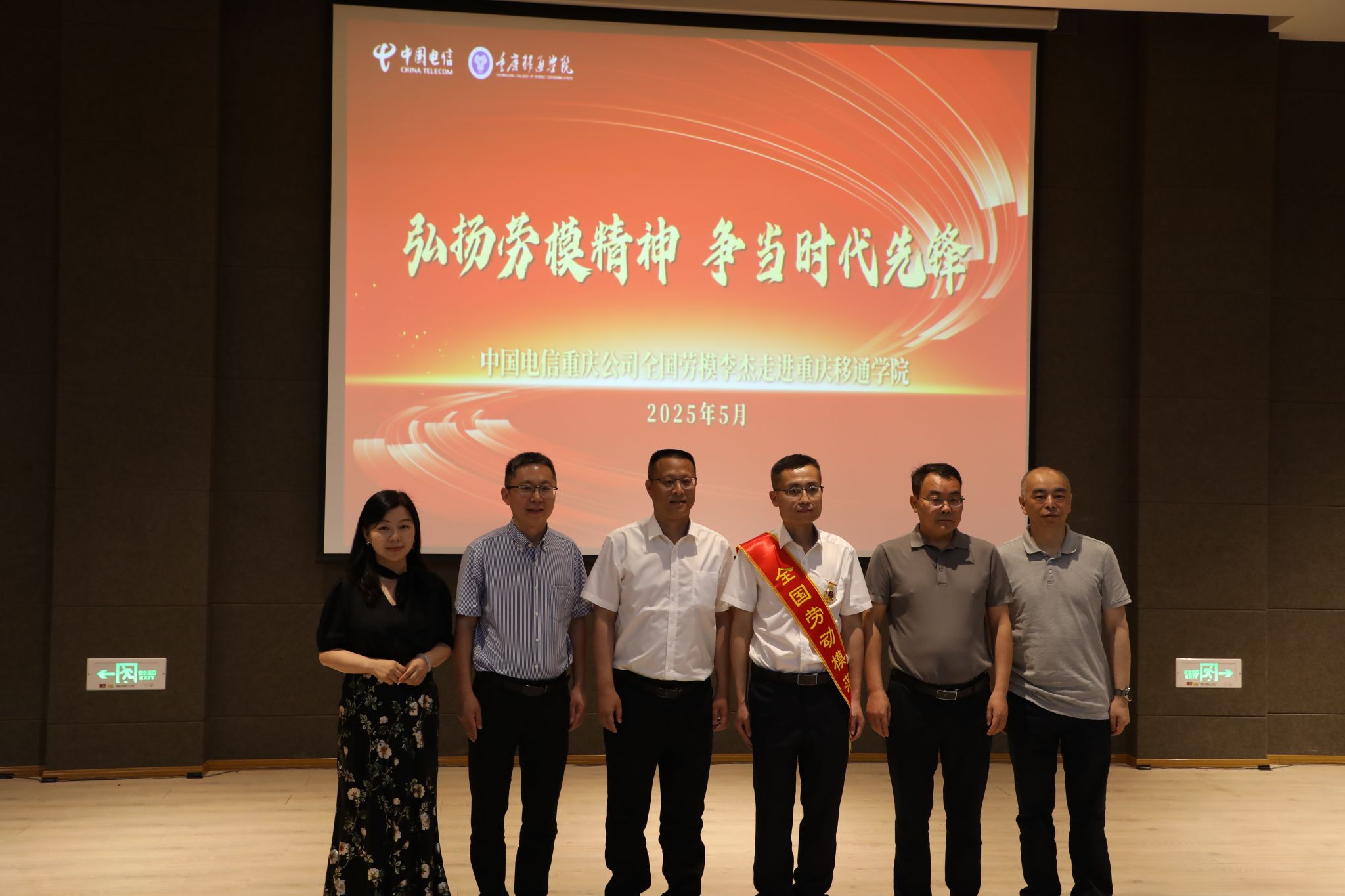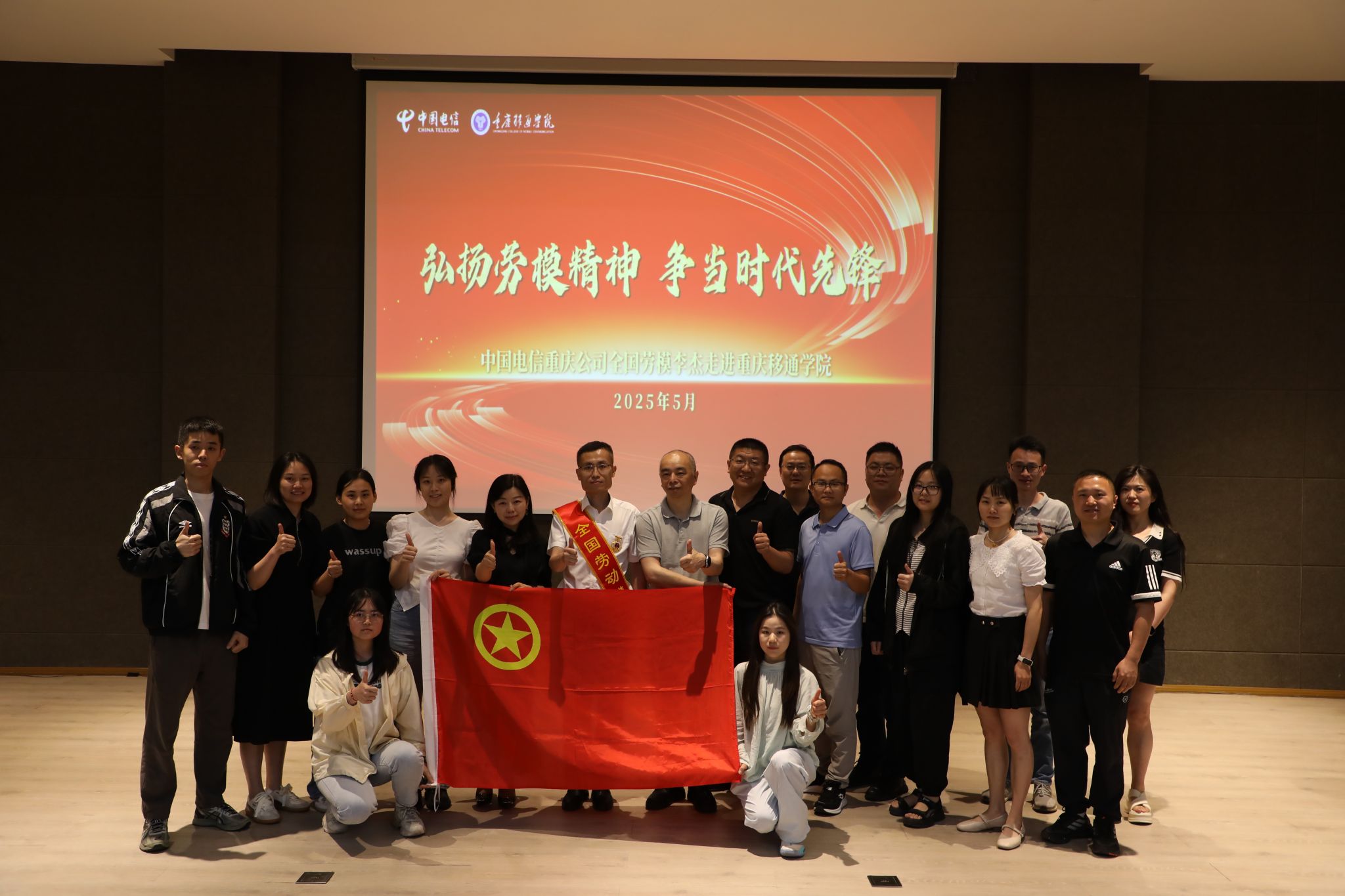 5月14日,全国劳模、中国电信重庆公司李杰走进重庆移通学院,开展“劳模精神进校园” 主题宣讲活动,为近300名师生代表带来一场精神与技术的双重盛宴。