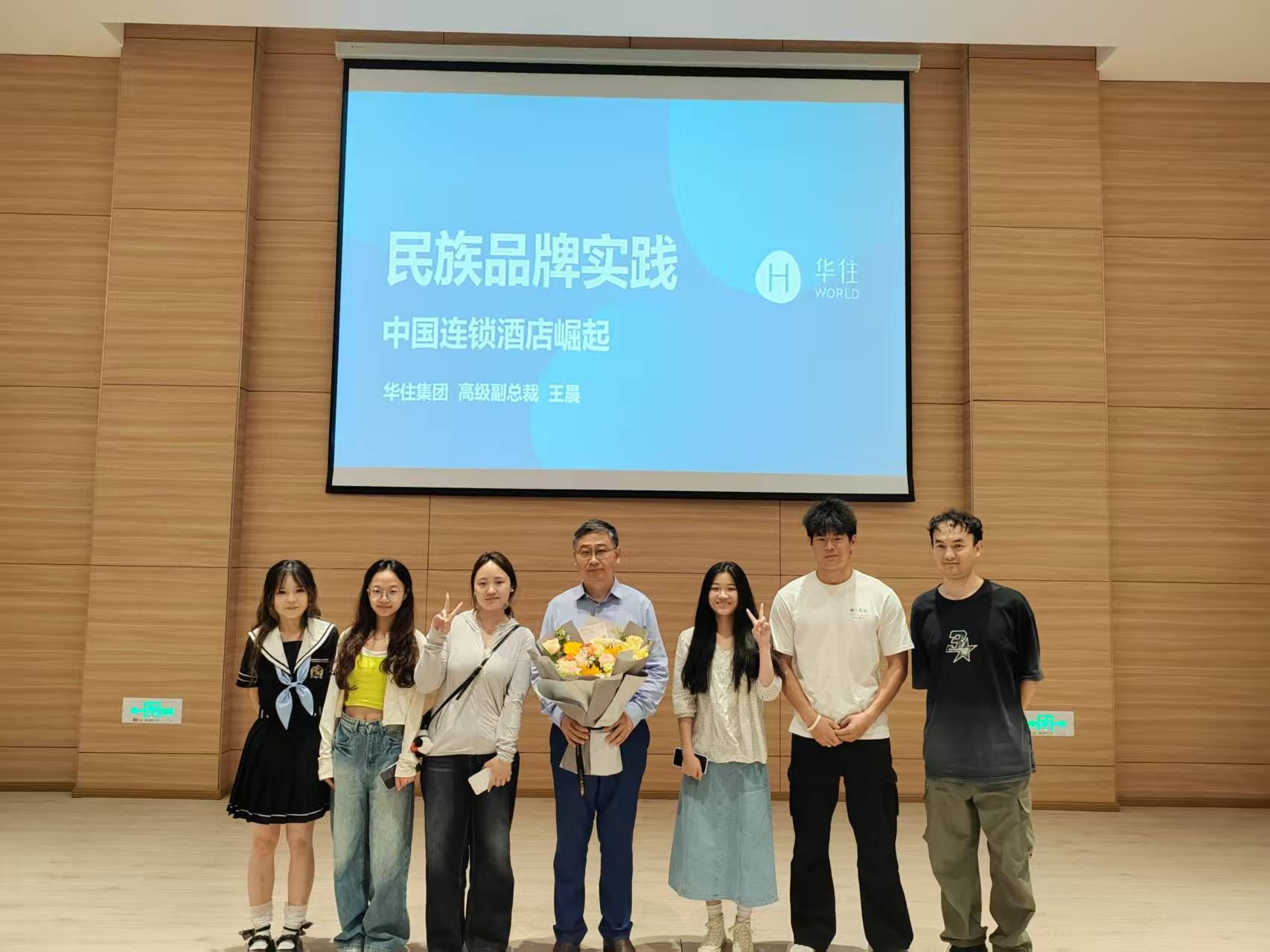王晨总在签约仪式结束后,以“民族品牌的实践——华住集团的发展之路”为主题,为同学们带来了一场精彩的分享。王晨总以华住集团的品牌建设故事为核心,为同学们呈现了华住集团如何实现品牌的升级与迭代,从一个国内品牌成为一个国际品牌。华住集团立志于在品牌建设的过程过程与一群人做点快乐的事,王晨总希望这一群人中,能有优秀的移通学子,期待能够与同学们在华住相会。
