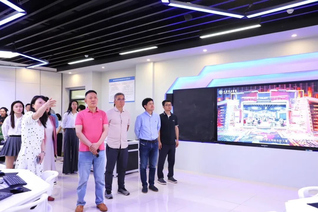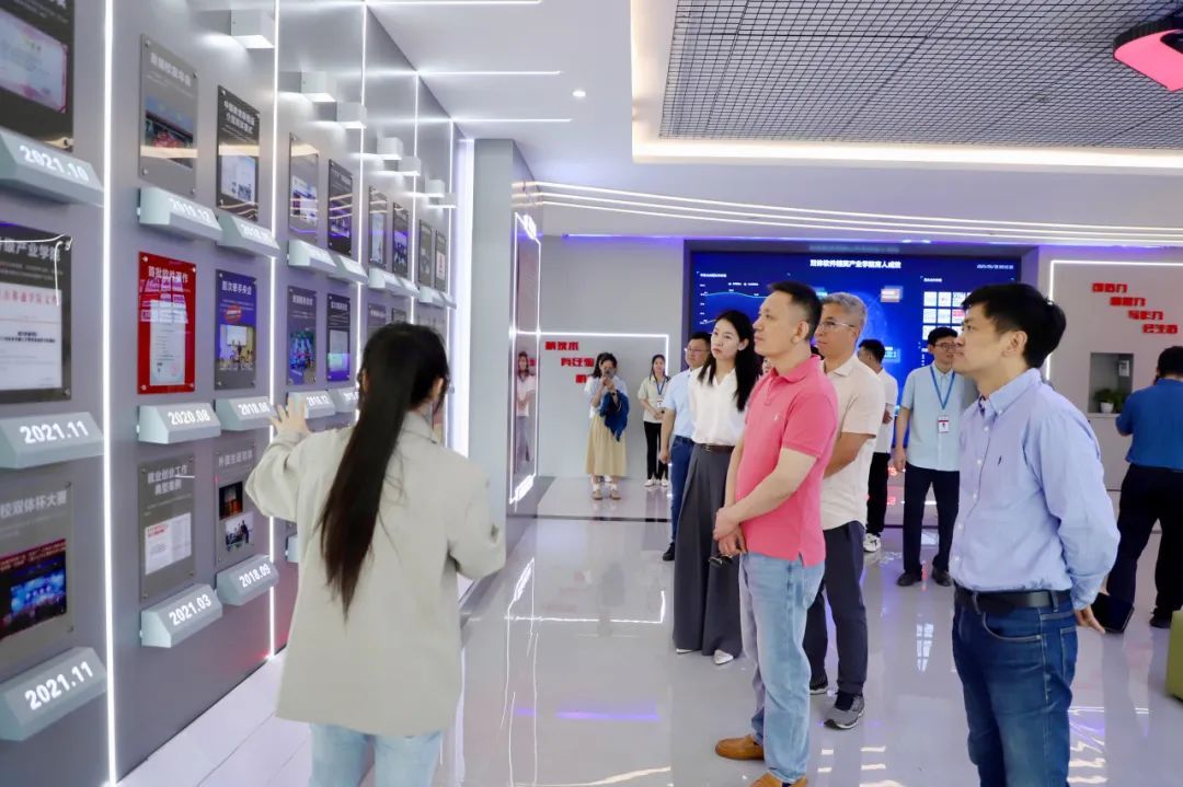 来校期间,徐长军一行沉浸式体验校园特色。在中国最大巨幕厅、重庆移通学院电影院与500余名移通学生体验电影赏析课堂,参观了学校网络攻防靶场、双体软件精英产业学院、全媒体演播厅、观云书院、綦江非物质文化遗产馆、星池游泳馆等地。