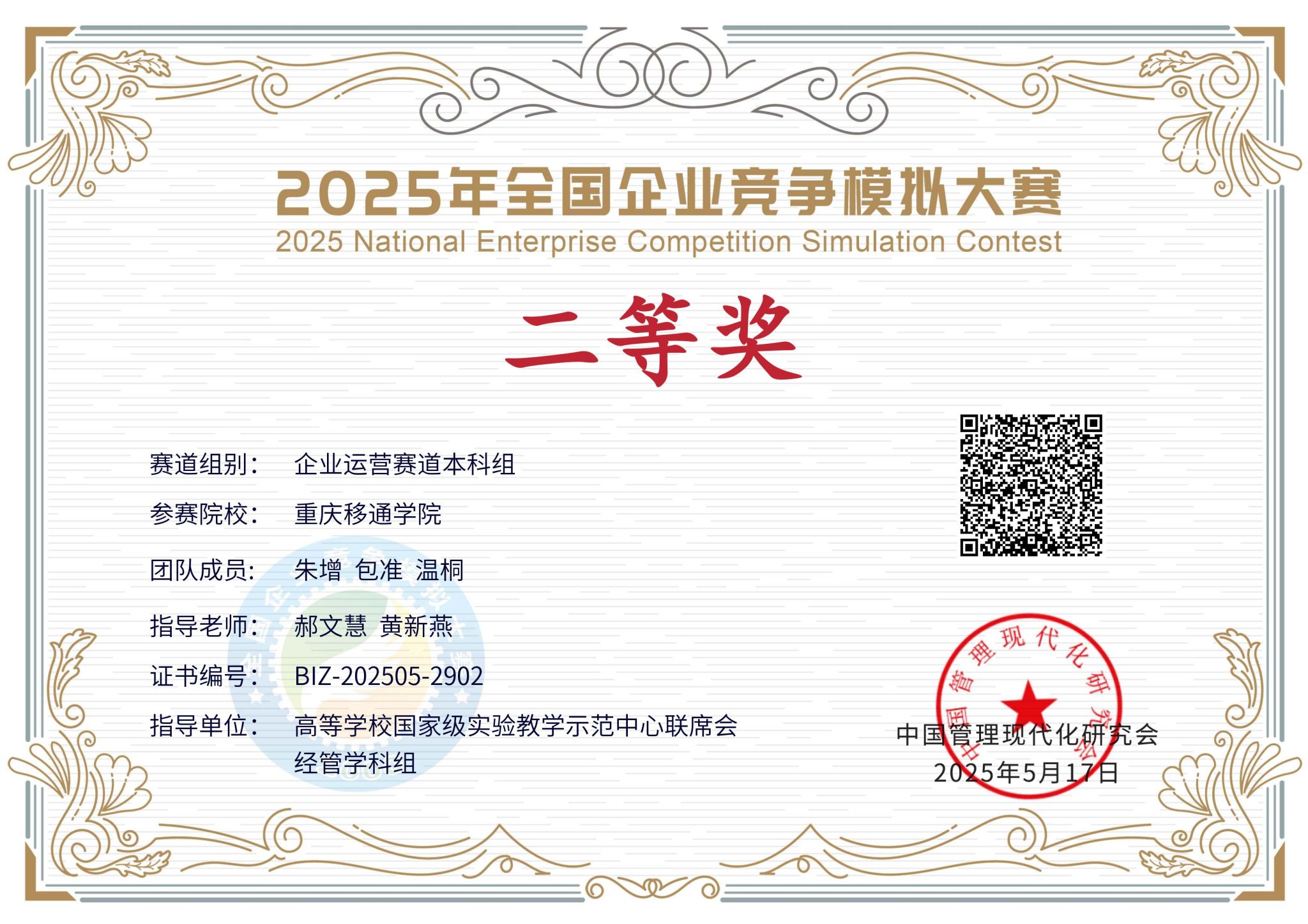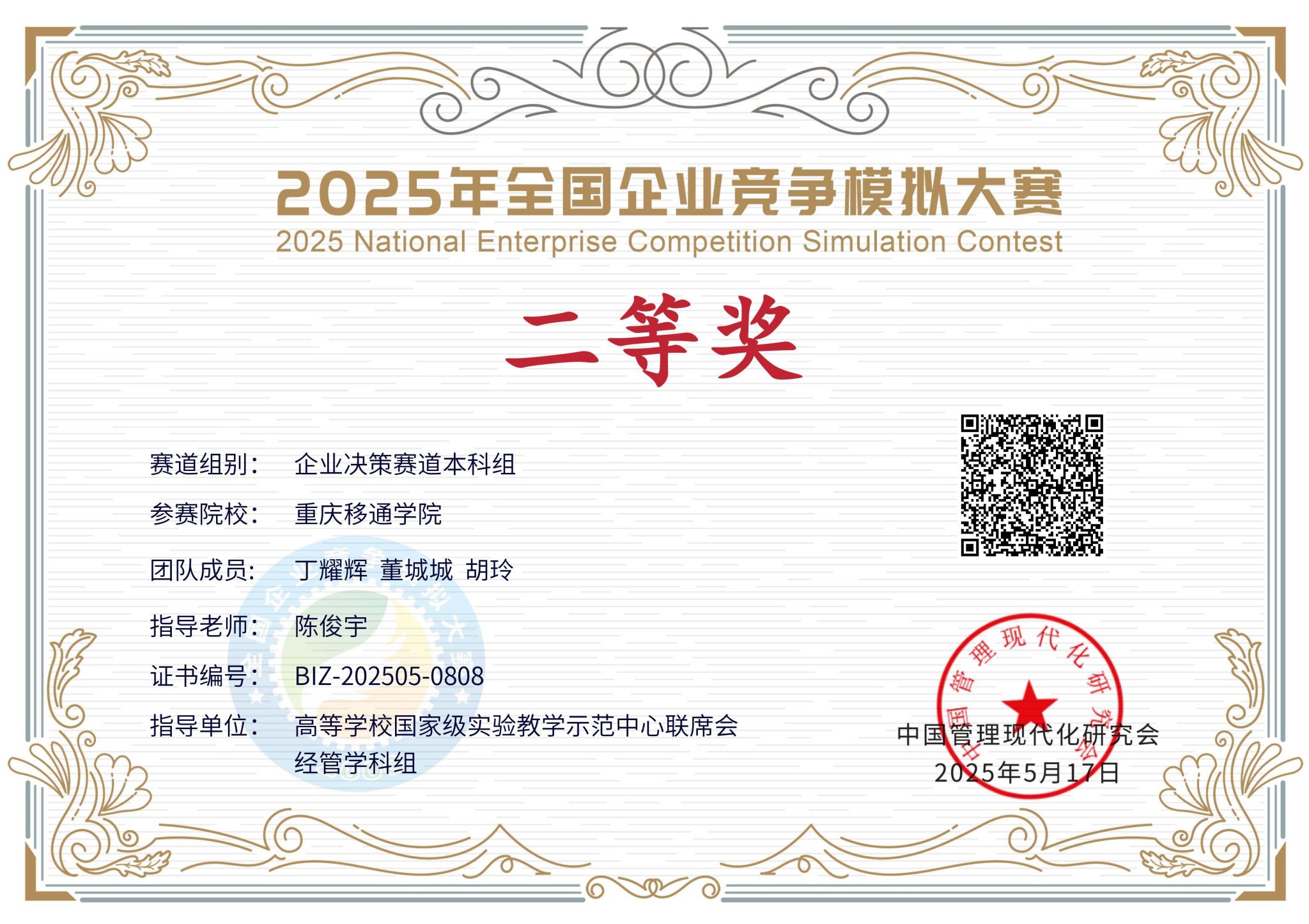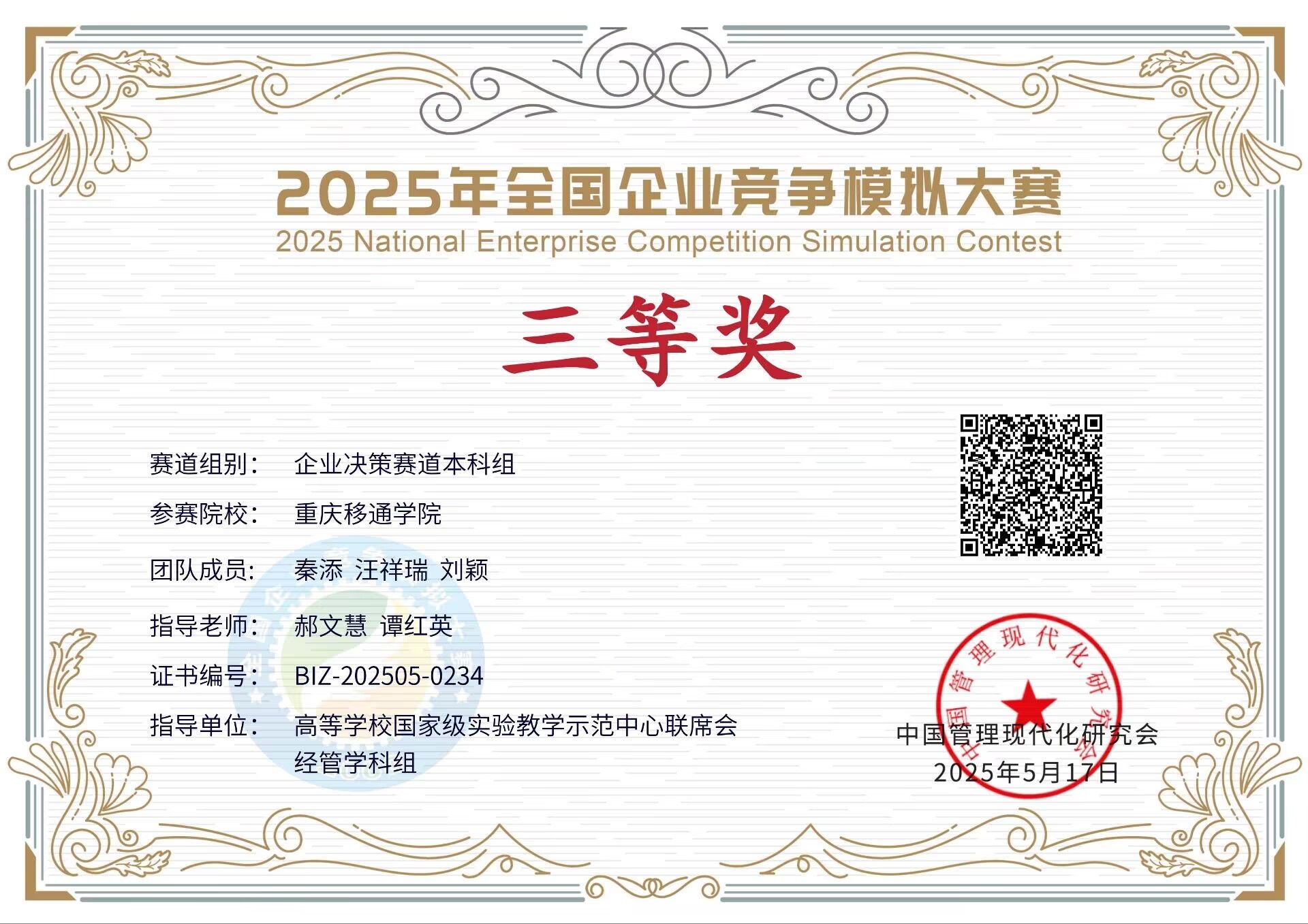 5月18日,2025年全国企业竞争模拟大赛总决赛落下帷幕。大赛于3月初启动,由中国管理现代化研究会、高等学校国家级实验教学示范中心联席会经管学科组指导,中国管理现代化研究会决策模拟专业委员会主办,全国企业竞争模拟大赛组委会承办。通过前期的校内赛选拔,经过全国复赛、全国半决赛的层层筛选,我校淬炼商学院、远景学院学生组成的10支队伍在企业运营赛道和企业决策赛道中喜获荣誉,充分展现了我校学子出色的商业智慧和团队协作能力。
