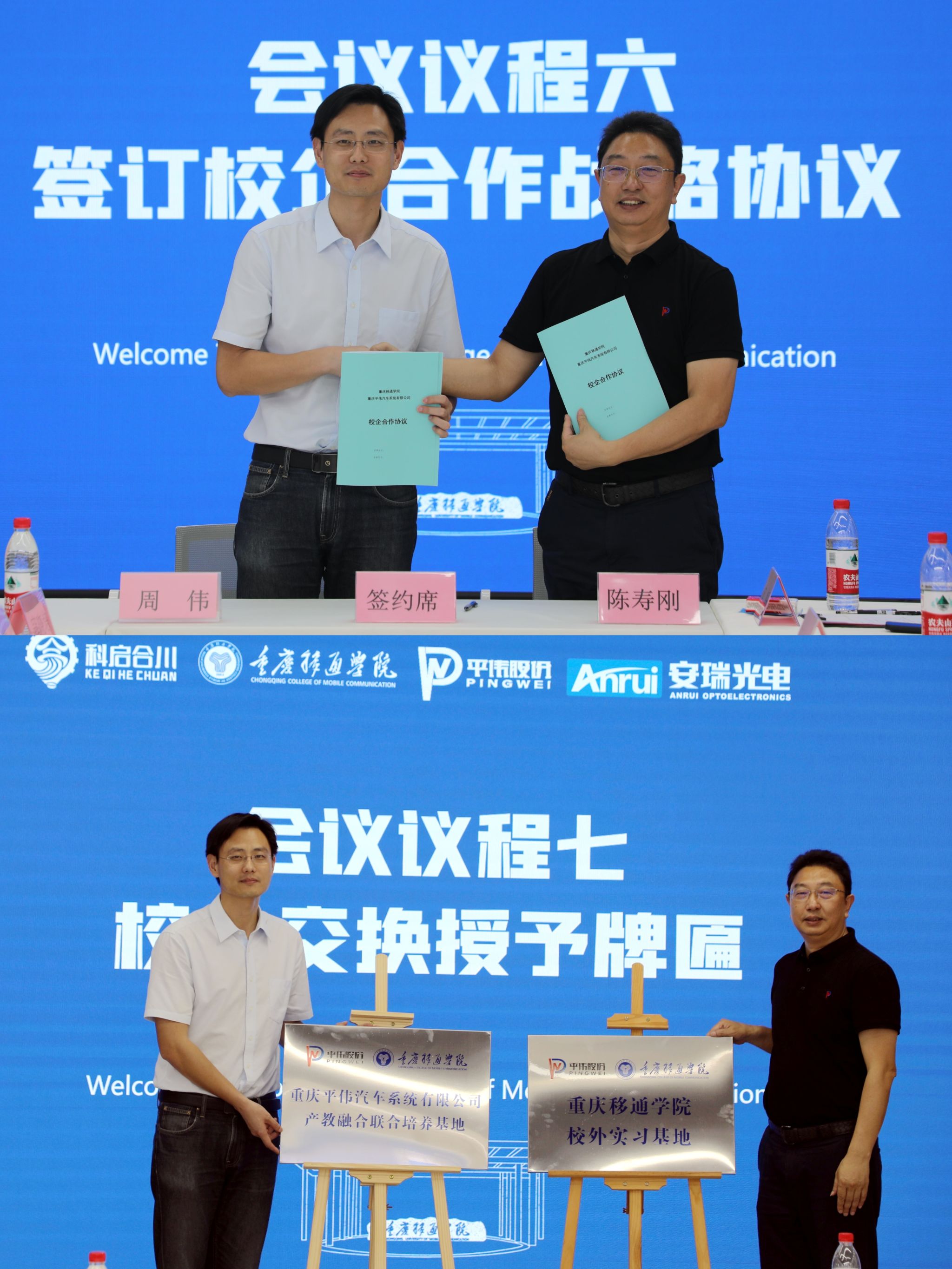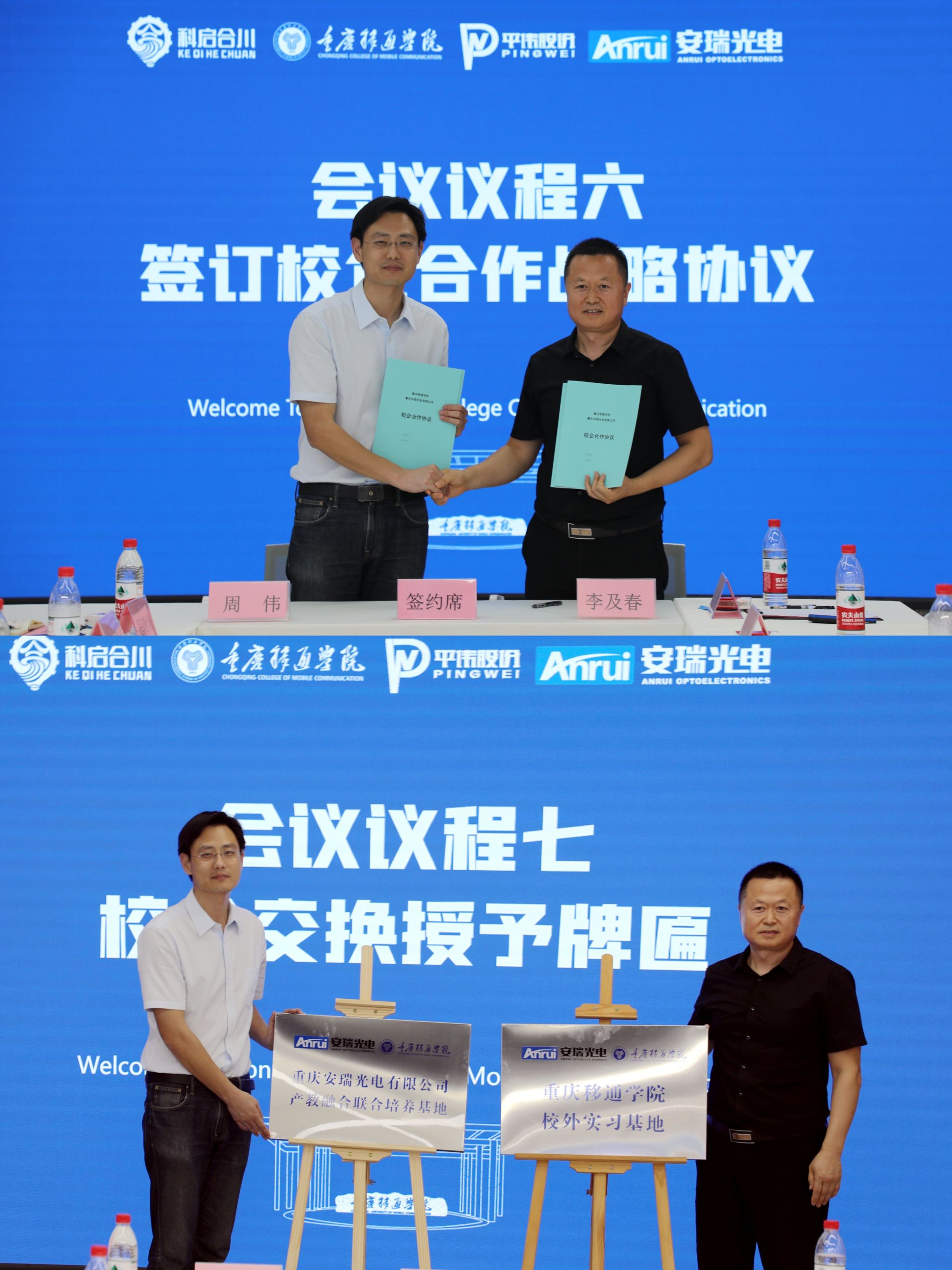 活动现场,重庆移通学院与两家企业正式签署校企战略合作协议,领导互换授予牌匾,“重庆移通学院校外实习实训基地”与企业“产教融合联合培养基地”正式落地。周伟副校长代表学校向企业高管及专家颁发兼职教授聘书,标志着双方在师资共享、人才共育、项目共建等方面迈出了实质性步伐。