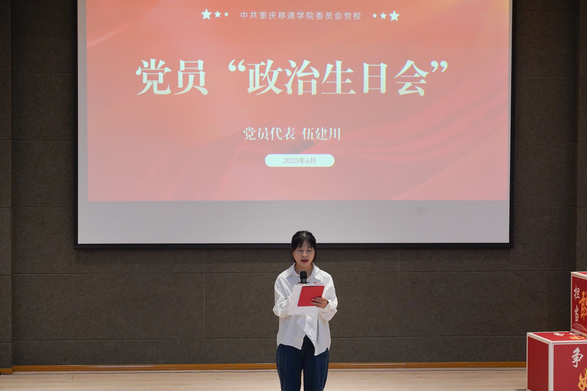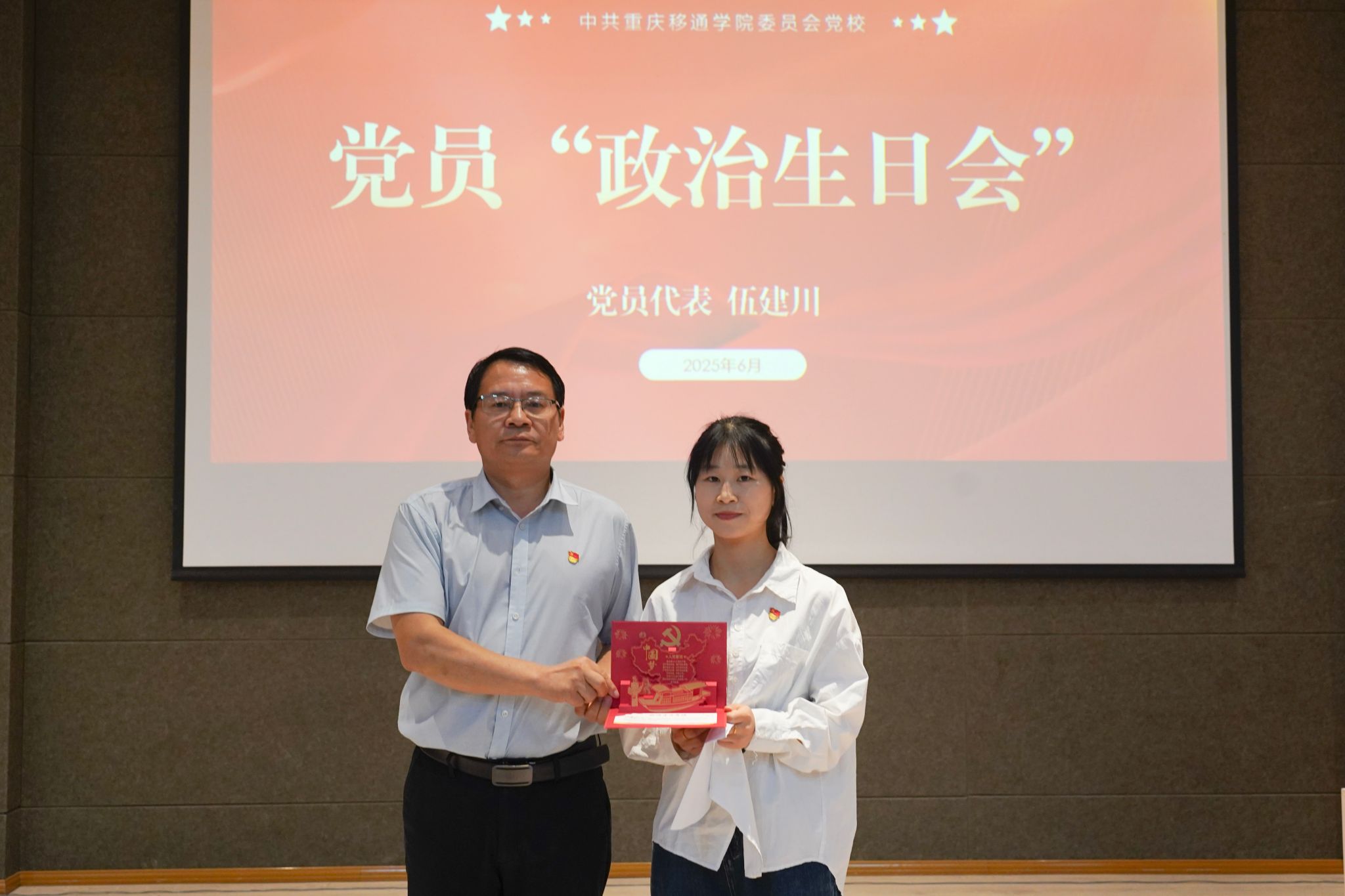为激发党员荣誉感,强化党员身份意识和责任意识,中共重庆移通学院委员会党校为培训期间恰逢生日的学生党员伍建川同志送上一份特殊礼物——“党员“政治生日”贺卡”,勉励其始终保持共产党员的先进性,以踔厉奋发的战斗姿态,时刻发挥好先锋模范作用。