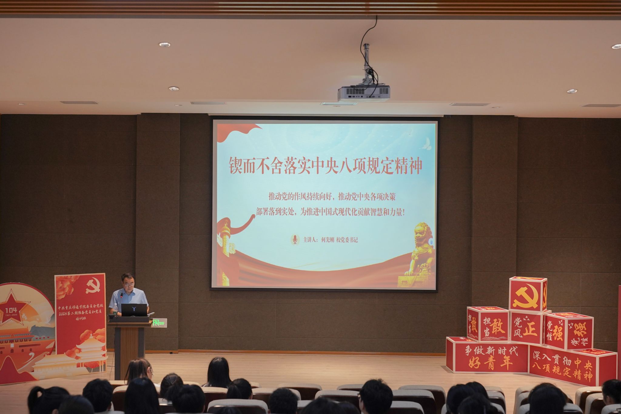为深入学习贯彻中央八项规定精神,推动党的作风持续向好,增强师生党员的责任与使命意识,中共重庆移通学院委员会党校于6月17日至20日在六度空间无限多功能厅开展第二期预备党员和党员培训班。本次培训专题党课由党委书记何先刚主讲,题为《锲而不舍落实中央八项规定精神》,共计120名预备党员和党员参加此次培训。