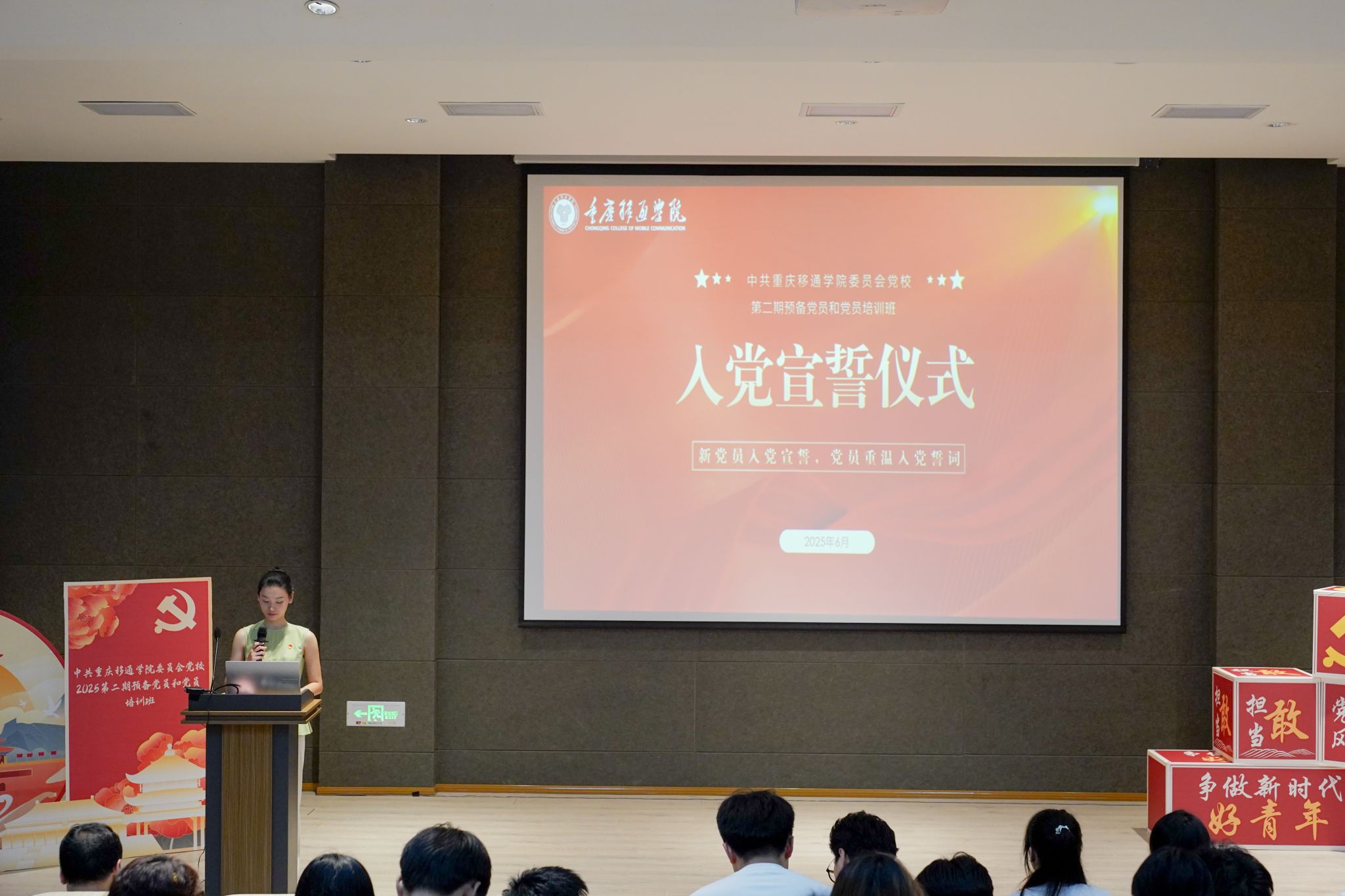 为加强党员思想政治教育,增强党员的责任感和使命感,教育引导新发展党员铭记入党初心、践行入党誓词,充分发挥先锋模范作用,中共重庆移通学院委员会党校于6月18日,在六度空间无限多功能厅举行“迎七一 强党性 践初心”新党员入党宣誓仪式。本次新党员入党宣誓仪式由党委组织部负责人屈俐杉主持。