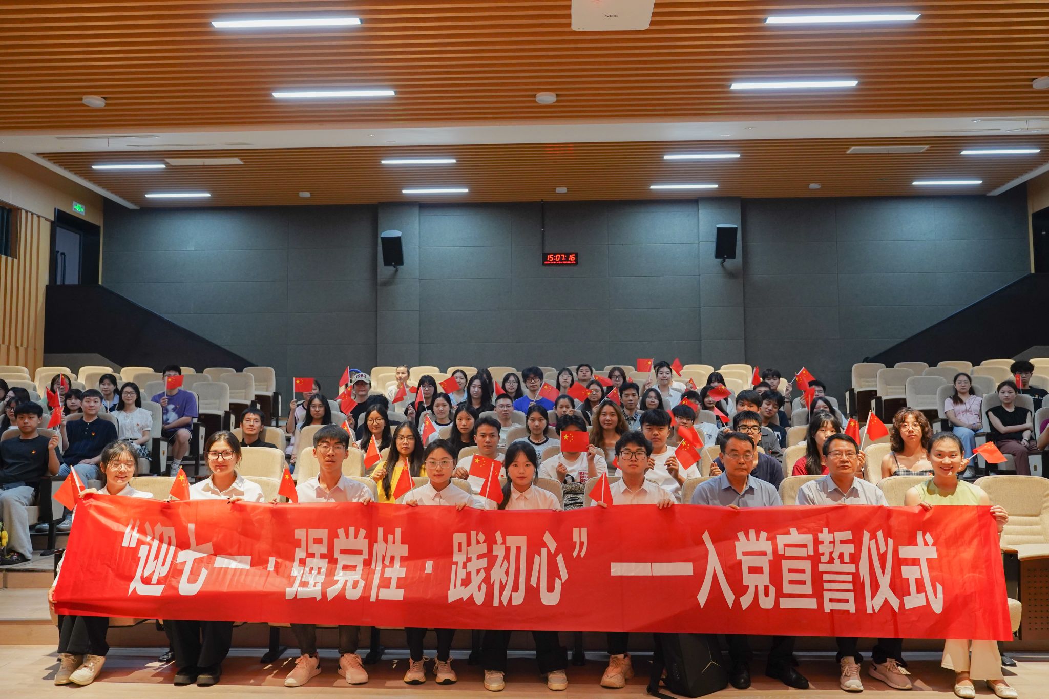 仪式在激昂的《国际歌》声中拉开序幕。接着,由党委组织部部长苏述庚领读誓词宣誓,全体党员面向党旗,右手举拳,庄严宣誓。“我志愿加入中国共产党,拥护党的纲领,遵守党的章程……”铿锵有力的宣誓声传递出共产党员的初心与使命,表达了新党员们对党的深厚感情和无限忠诚。