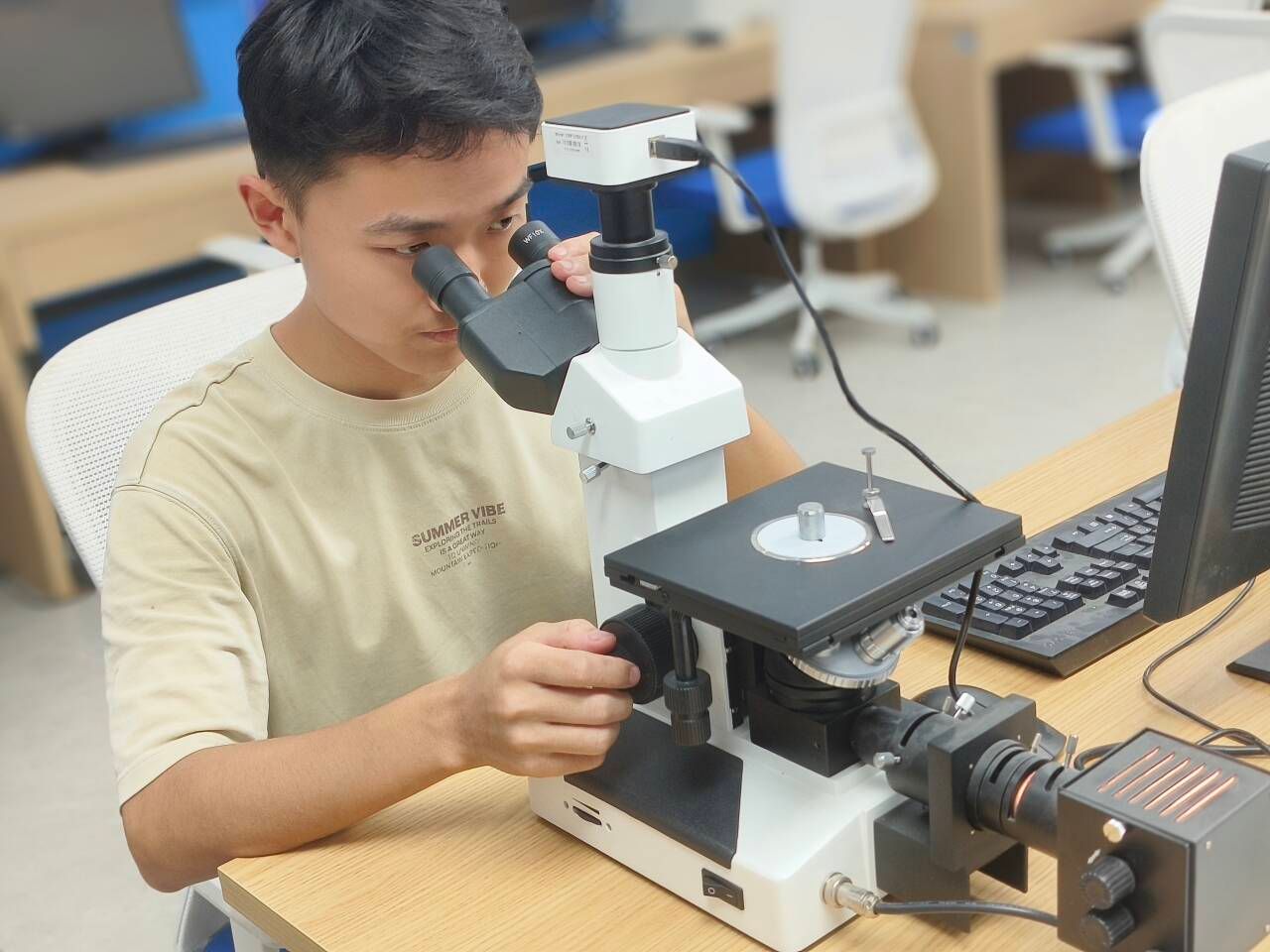 备赛阶段,团队成员展现出超强的韧性与协作精神。在省赛阶段,袁登攀、秦海云、王海龙、陈文浩和唐盛五位同学凭借扎实的专业功底和稳定的发挥,从众多参赛者中脱颖而出,均被评定为A类选手。这一成绩不仅彰显了他们在金相制样、显微观察等核心技能上的卓越水平,更为后续国赛积累了宝贵的实战经验。因人数限制,经过综合考量,学院最终选派袁登攀、秦海云、王海龙三位同学作为代表参加国赛。进入决赛备战期,三位选手在余翠兰、寇晓培、彭真等骨干教师指导下,针对国赛技术标准反复打磨操作细节,通过无数次模拟训练提升制样精度与组织分析深度。其中,袁登攀同学总结省赛经验,特别是作为A类选手的实战心得,在日常训练中主动加练,对金相腐蚀时间、抛光力度等关键参数进行把控,最终凭借精湛的操作技艺制备出质量上乘的金相样品,对材料微观组织的观察精准到位,以极佳的表现摘得国家级一等奖,展现了扎实的专业功底与稳定的竞技状态。团队其他成员亦不甘示弱,在各自的赛程中发挥出色,合力为学校斩获多项荣誉,尽显团队协作的力量。