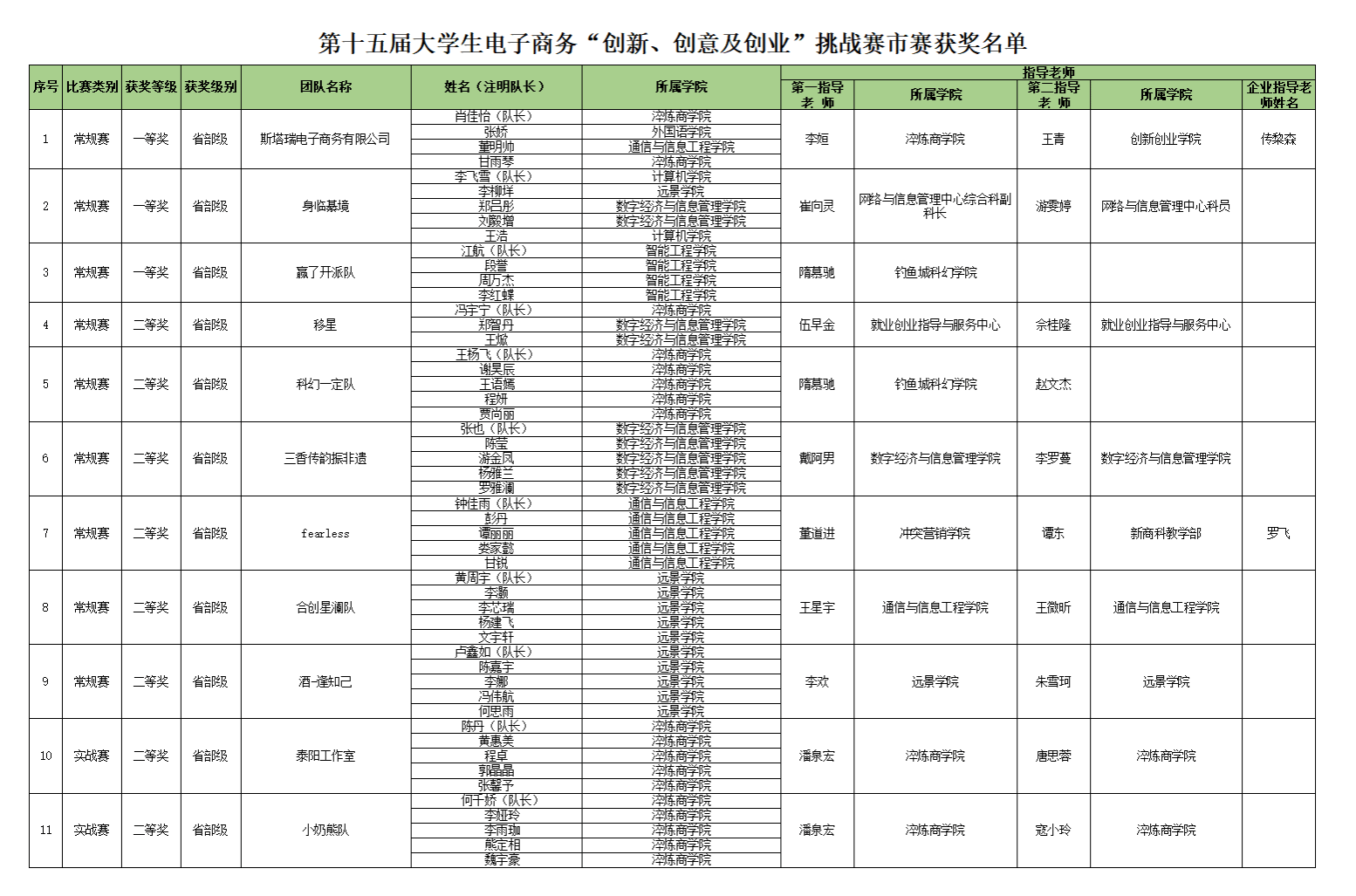 第十五届三创赛校级选拔赛和市级选拔赛共历时7个月,我校晋级重庆市市赛共16支队伍,其中常规赛12支,实战赛4支。经过激烈的角逐,常规赛赛道团队“身临綦境”以“惊鸿”文旅项目入围终极PK赛,与其他院校团队竞争国赛名额,虽最终仍无缘国赛常规赛,但依旧取得了较好成绩,身临綦境、赢了开派队、斯塔瑞电子商务有限公司3支队伍荣获重庆市三创赛常规赛赛道市级一等奖,8支队伍荣获省级二等奖,其中常规赛6支队伍,实战赛2支队伍。