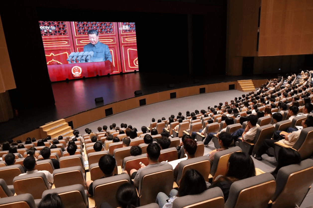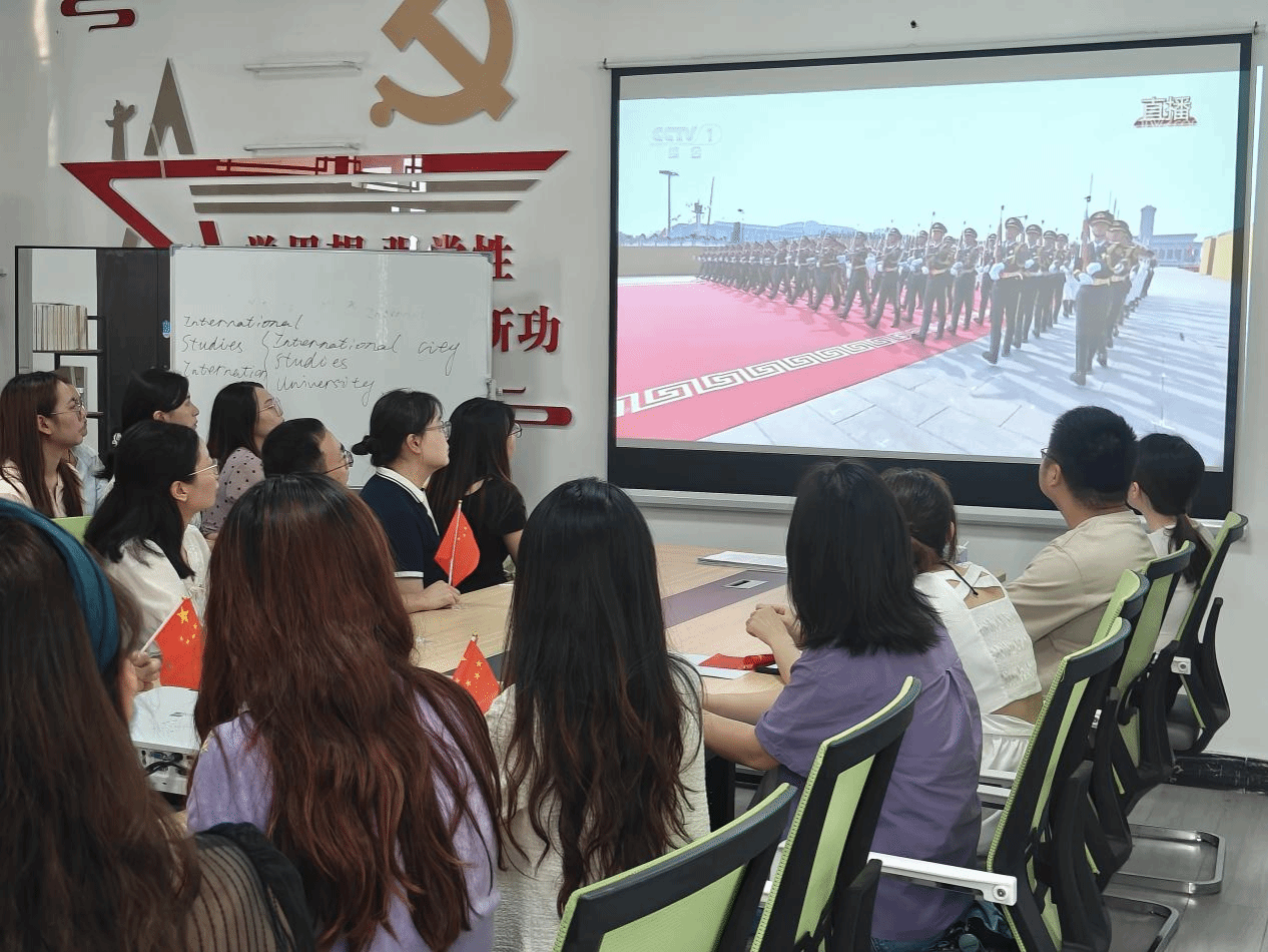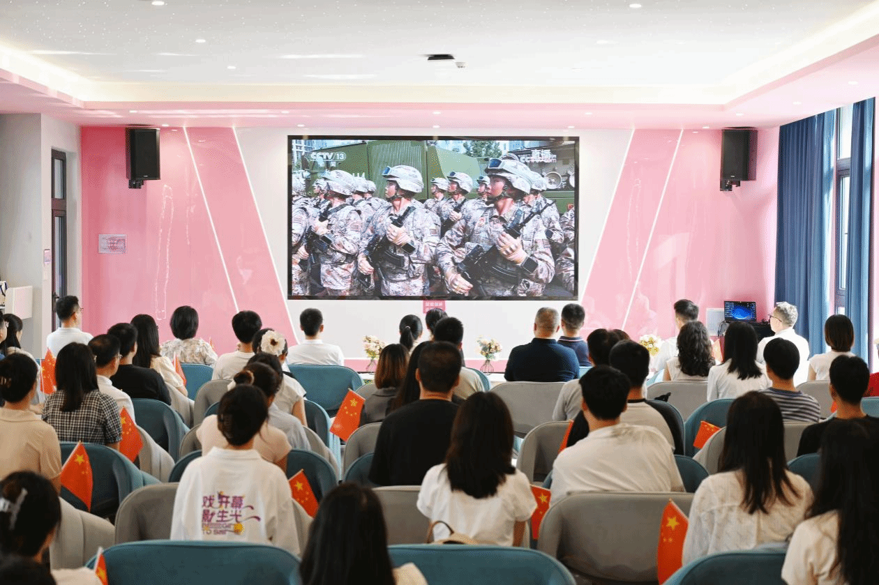 重庆移通学院全体校领导、党委委员、纪委委员、双校区党委理论学习中心组成员、各直属党组织委员及党员师生、统战团体及民主党派教师等在双校区主会场集中观看。校属各单位、各基层党支部、各学院团组织等通过校内活动空间、教室、宿舍等地点同步观看大会实况,共同追忆革命先辈奋斗历程,深刻体悟伟大抗战精神的时代内涵。