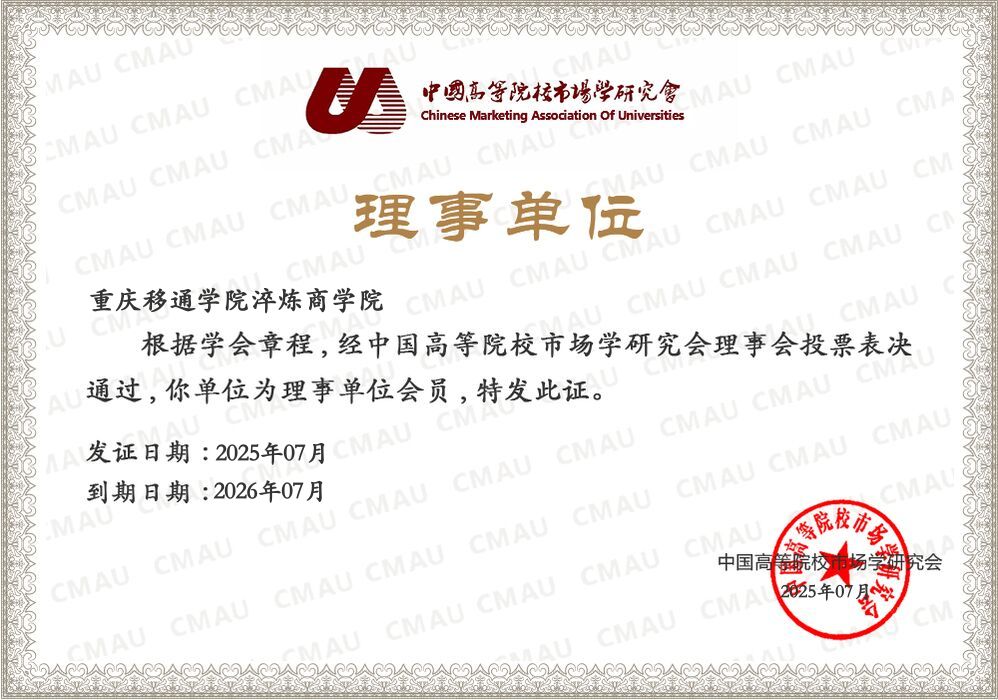 7月19日,中国高等院校市场学研究会理事会会议传来重磅喜讯——重庆移通学院淬炼商学院凭借在市场营销领域的特色化建设成果与卓越育人实力,成功通过理事单位会员申请,正式成为研究会理事单位。这一里程碑式的突破,不仅是对淬炼商学院整体办学水平的高度认可,更标志着其核心特色板块——冲突营销学院,迎来了与全国营销学科领域深度对话、协同发展的全新平台,为学校市场营销专业的特色化、高质量发展注入强劲动力。