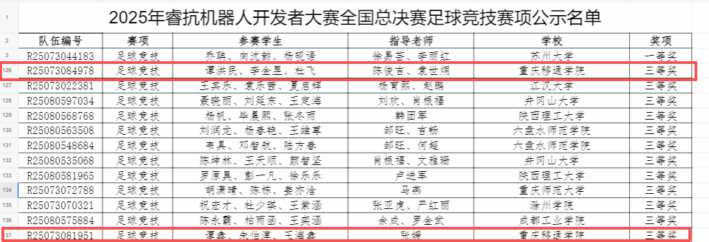 近日,由工业和信息化部人才交流中心主办的2025年睿抗机器人开发者大赛(RAICOM)全国总决赛圆满收官。从省赛到国赛,重庆移通学院学子持续发力、双线告捷。7月11日,在重庆市赛中,斩获省市赛一等奖1项、二等奖1项、三等奖1项。9月26日至27 日,重庆移通学院选派的两支参赛队伍表现突出,全员斩获全国三等奖。