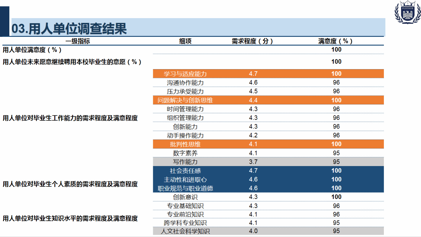 调查显示,90%的毕业生认为学校的完满教育对自身职业发展有积极帮助,用人单位对学生沟通协调、情商等软实力的满意度超过95%。这种复合型素养的培养策略,有效保障了毕业生在广泛领域中保持强劲竞争力。