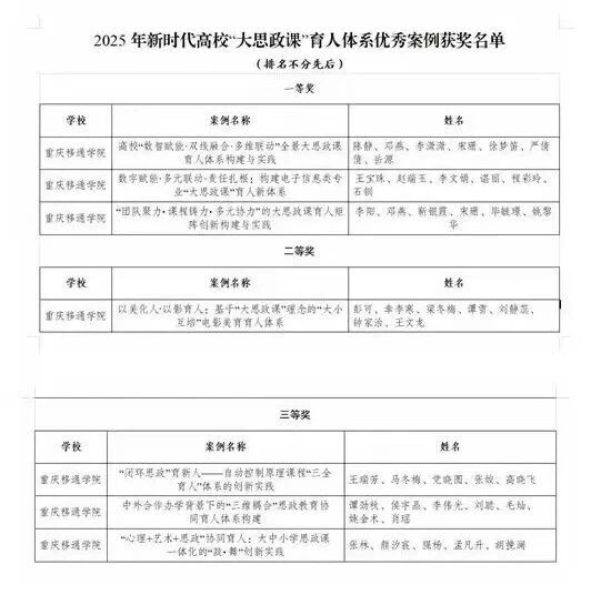 近年来,学校思政工作成效显著,获评重庆市“大思政课”育人体系优秀案例多项奖励,学生党支部获国家级、市级样板支部表彰,充分彰显学校“立德树人”的根本任务落实成效。
