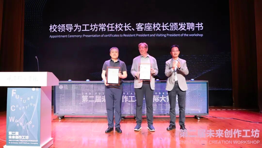 随后,吕校长为工坊常任校长吴岩教授和客座校长James Patrick Kelly颁发聘书。