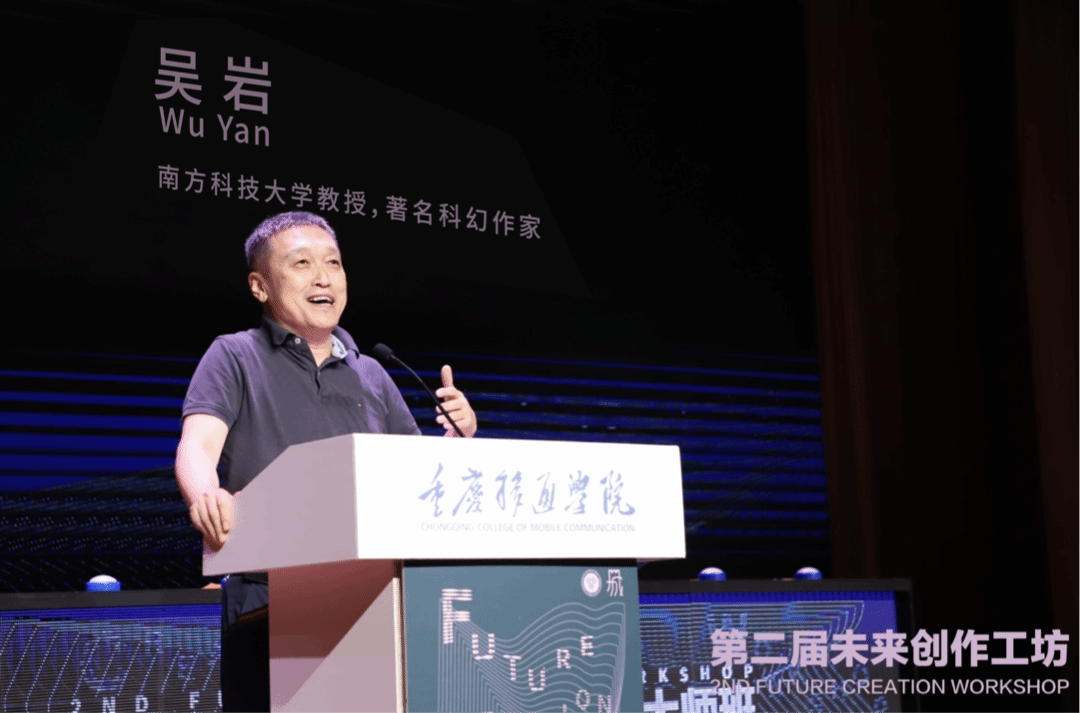 10月15日晚19:00,第二届未来创作工坊·国际大师班开幕式在重庆移通学院合川校区下里巴人剧场成功举办。重庆移通学院校长吕翊、校长助理刘枚、集团科幻板块主管皮若兰,和南方科技大学教授吴岩、美国著名科幻作家James Patrick Kelly、Naomi Krizer,荷兰著名科幻作家Roderick Leeuwenhart、智利著名科幻作家Leonardo Espinoza Benavides、中国著名科幻作家宝树、江波、凌晨、程婧波,重庆市作协、中国科普作协、重庆市科协、重庆文学院的领导和嘉宾,以及三校四区科幻学院的师生代表们一道见证了工坊的盛大启幕。