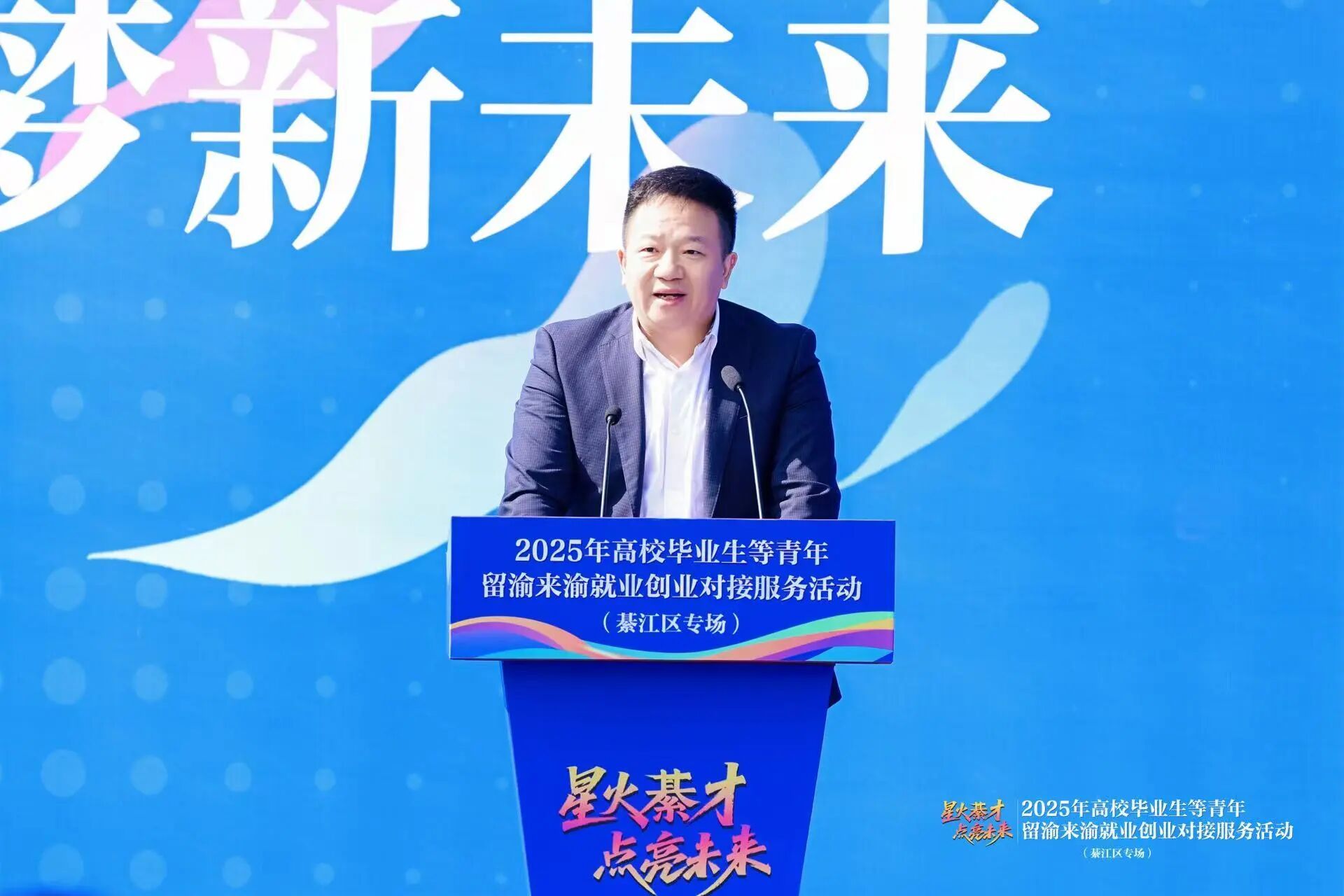 开幕式最后,重庆市人力资源和社会保障局党组成员、副局长李林峰在讲话中表示,重庆正处在高质量发展的关键机遇期,比任何时候都更需要青年、更渴望人才。鼓励广大毕业生把握时代机遇、选择重庆、留在重庆、在这片热土上施展才华、实现梦想。