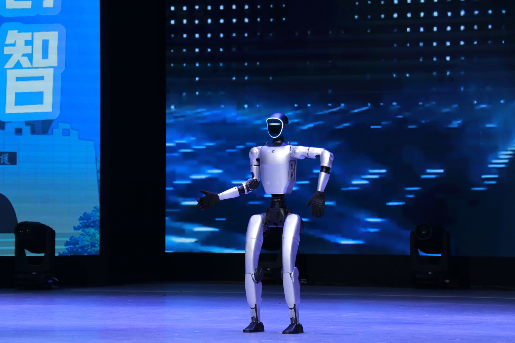 活动分为两大阶段有序展开,氛围层层递进、亮点纷呈。上午9点整,开幕式在重庆移通学院缤果大剧院拉开帷幕。现场灯光璀璨,青春气息与科技氛围交融。开场节目为智能机器人舞蹈表演——主角机器人伴随动感旋律灵活舞动,完成旋转、摆臂等流畅动作,身旁两只机器狗同步卡点律动,萌态十足又科技感满满,瞬间点燃全场热情;伴随着庄严雄壮的国歌旋律,全场肃立致敬;裁判与选手代表依次宣誓,铿锵誓言彰显着公平竞赛与奋勇争先的信念。