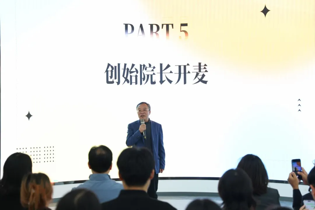 整场活动的高潮是笑文化学院创始院长劳马的现场“开麦”,“教授”两个字带来的刻板严肃被彻底消解。这位平时在文学圈、教育界极具地位的大咖展现出自己风趣幽默的底色:“我本来想保持专家风度的,结果被同学们的笑声传染到绷不住!”他坦言被“移通把学生当宝贝养”的理念圈粉。“我们今天在这里不是为一个普通的学院揭牌,而是为人类最古老、最宝贵、但最不被重视的文化遗产——笑声,举行一个加冕典礼。”