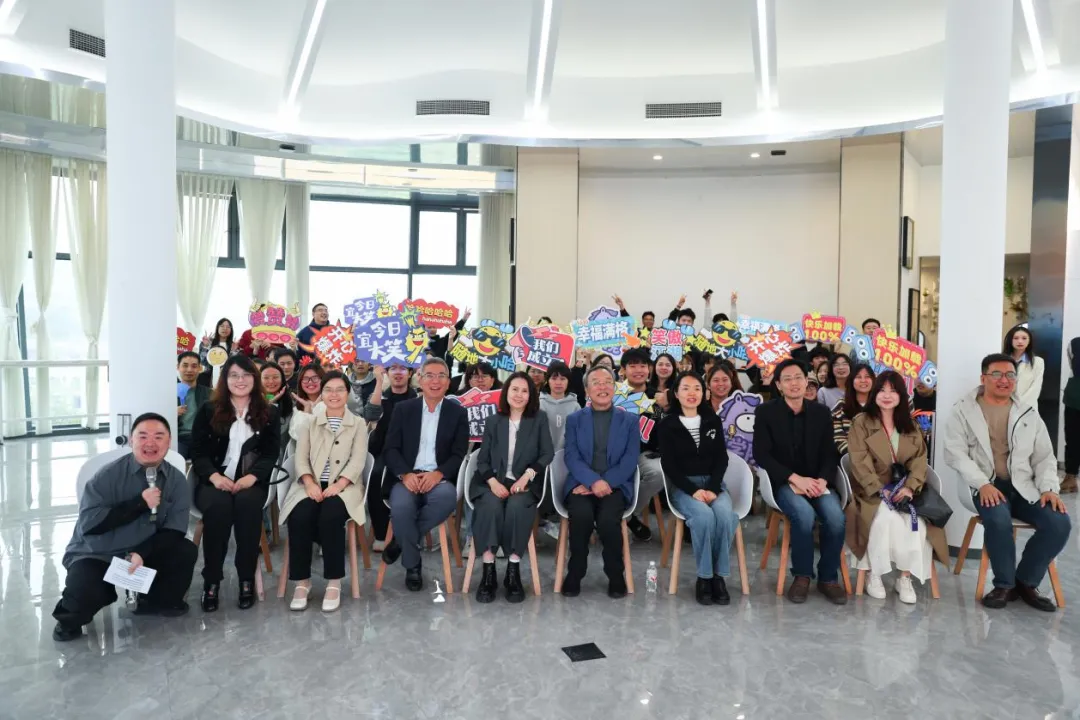 作家、教育家劳马(马俊杰教授、博士生导师),中国新商科集团联席董事长陈晓莉、总裁王征、高级副总裁张亮及重庆移通学院校长吕翊等嘉宾,与师生代表共同见证笑文化学院的“欢乐引擎”的正式点火启动。