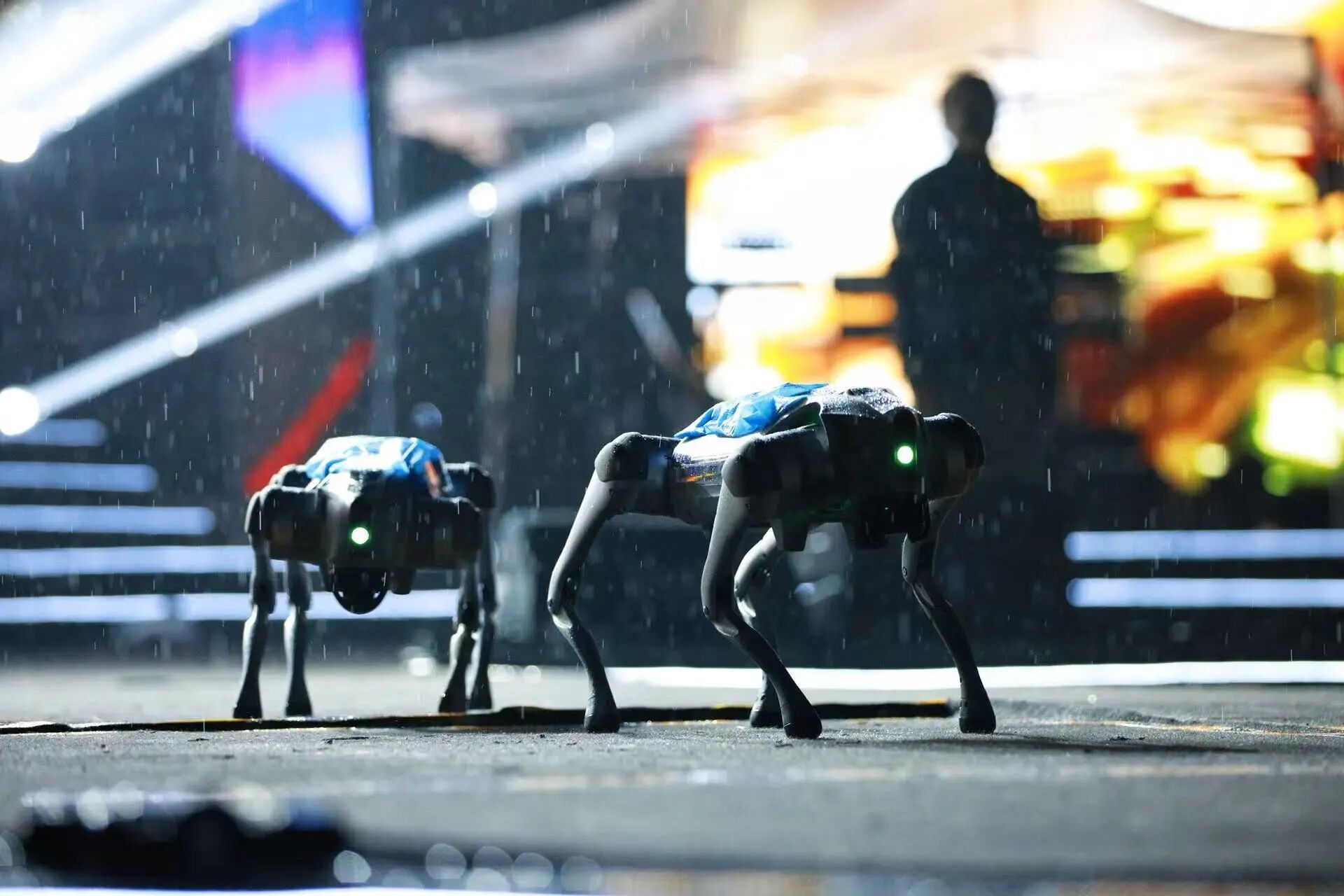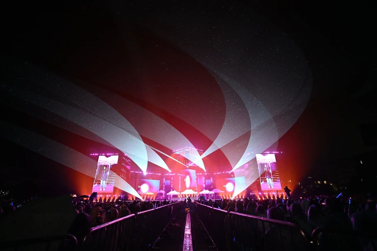 由青羽乐团和艺术教育中心教师带来的《感》,首次尝试将民乐、电音与光影编织在一起,在古今的碰撞中唤醒视听新感知。除此之外,“机器狗”在台上旋转跳跃,“机器人”在台下与观众互动,现场万人一齐蹦迪的画面成为今晚一大亮点。