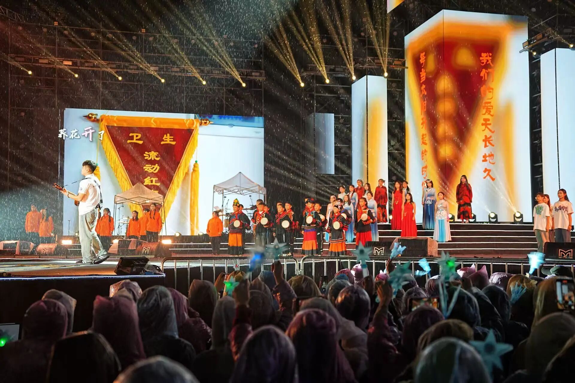 最终章《耀》以流行乐串联全场,校乐团蒙太奇乐队带来全开麦《最美的太阳》《我管你》炸裂舞台,在千人合唱与灯光交织中,凝聚为“无可替代的我们”的集体宣言,美育已不再是概念,而成为可感可知的情感教育与生命教育。