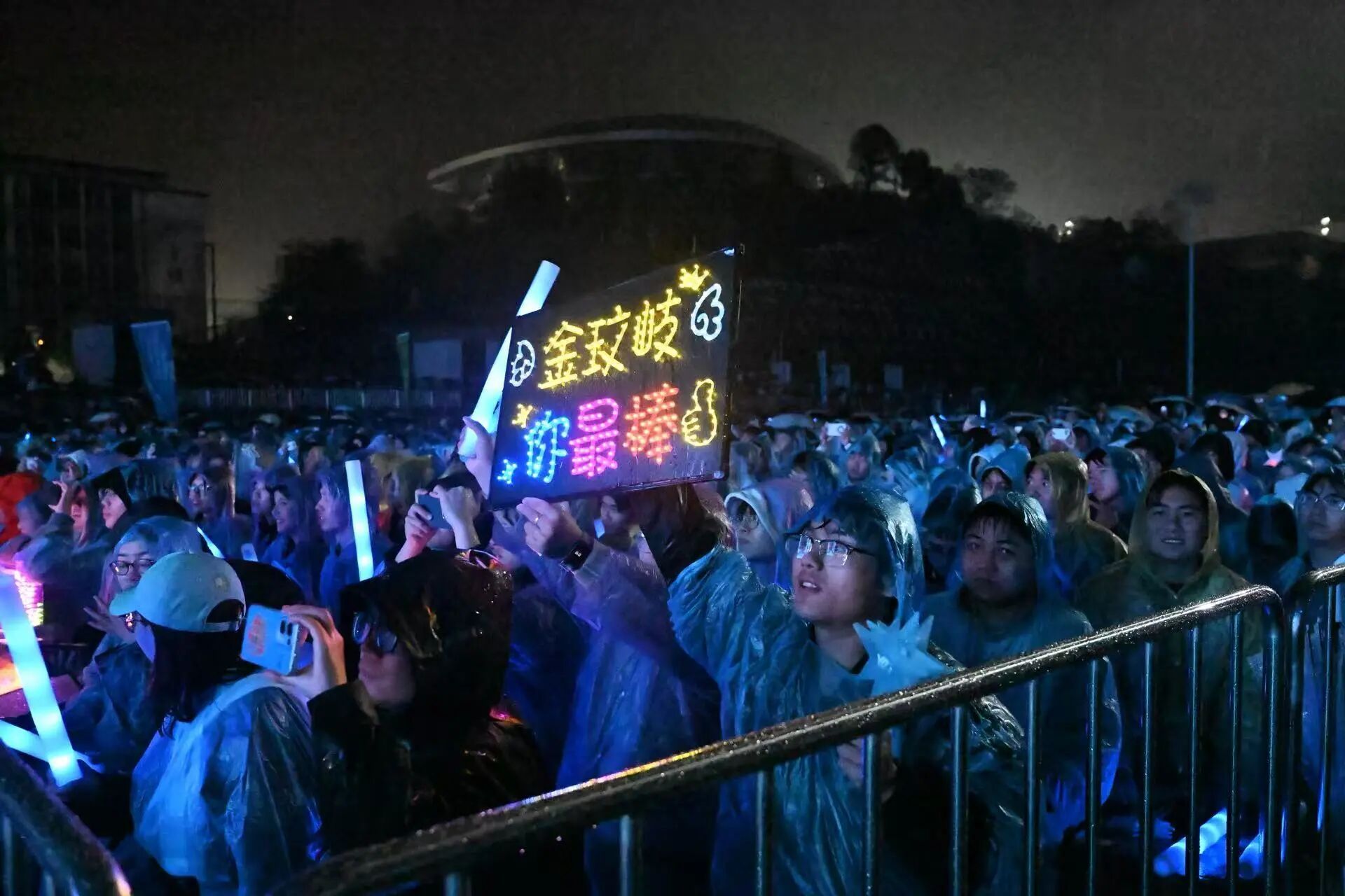 压轴登场的创作女歌手金玟岐,以《娱乐》《13》《才华有限公司》《天真有害》《生日快乐》《岁月神偷》《姗姗》《新娘阿花》等一首首故事感十足的作品,为整场晚会镀上了一层温暖而诗意的滤镜。“时间是让人猝不及防的东西”“走着走着怎么脚步渐渐慢了”耳熟能详的旋律响起,仿佛星港中回荡的絮语,陪伴着现场万名师生在艺术中寻找共鸣。"最后一首歌《姗姗》,希望你们都有一个好的睡眠,祝大家有一个非常美好的大学生活。"