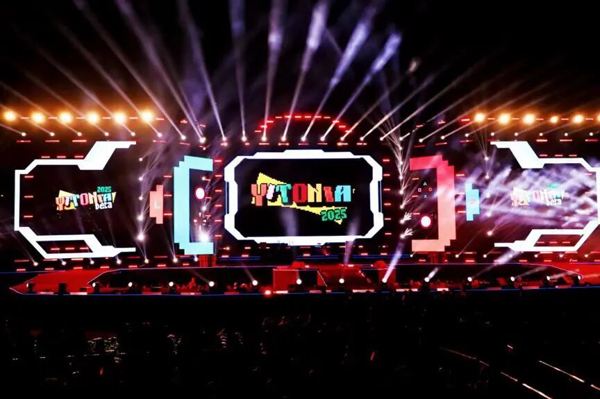 在研讨会正式开幕前夜,一场以"Yitonia Beta"为主题的迎新晚会于10月24日晚在南校区足球场上演,为与会嘉宾呈现了一场充满未来感的视听盛宴。晚会巧妙融合Cosplay、音乐剧、舞蹈等多元艺术形式,打造出一个沉浸式的像素风冒险世界。特邀实力唱作人李霄云倾情献唱,将现场气氛推向高潮。这场充满创意与科技感的艺术展演,不仅展现了移通学子蓬勃的青春活力,更体现了学校将美育融入校园文化的丰硕成果,为严肃的学术会议增添了动人的艺术色彩。