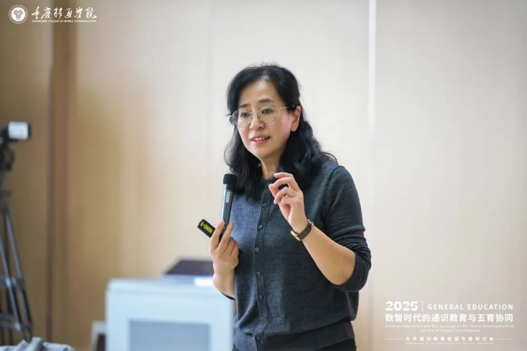 重庆移通学院通识教育学院院长皮若兰以《数智时代应用型大学通识教育与人的全面发展》为题,阐述数智时代通识教育与人的全面发展的内在联系,系统分享了重庆移通学院通识教育以学分驱动,课程筑基,实践锤炼,大赛引领,通过“美而精”的课程模块和“大而全”的实践平台,协同校内完满教育,书院制改革,让学生在数智时代找到全面发展的支点。