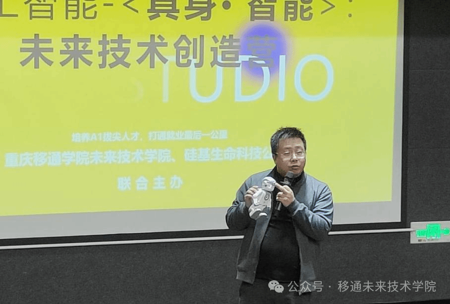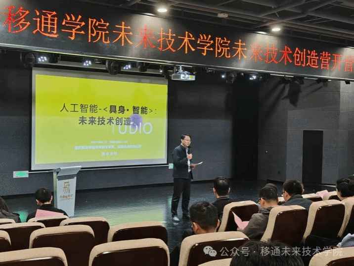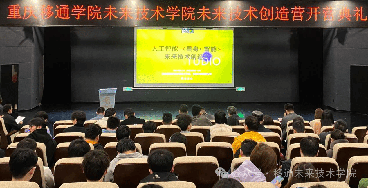 11月13日上午,重庆移通学院(合川校区)六度空间黑匣子剧场内,一场关于未来与光明的征程正式启航。由重庆移通学院未来技术学院与硅基生命科技公司联合主办的“人工智能《具身·智能》未来技术创造营”在此隆重开营。重庆移通学院副校长陈仲华、中国科学院大学重庆学院双创学院院长李向东,以及来自重庆市工程师协会、重庆市小微企业协会、重庆校企融合协会等4个协会,硅基生命科技公司、重庆善信智能科技公司、上优才仕人力资源咨询重庆公司、中连建业(重庆)人力资源公司等7个企业的领导及嘉宾出席了本次开营仪式。