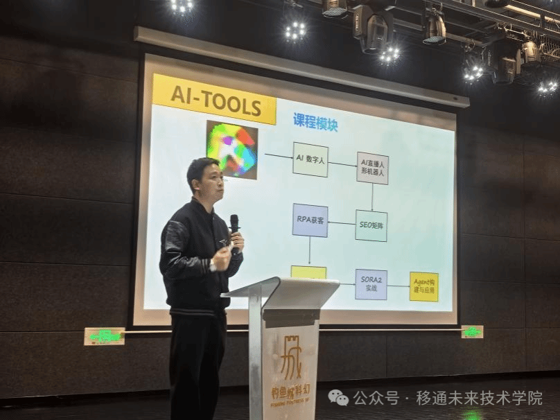 硅基生命科技公司董事长江学在开营仪式上现场展示了基于“具身智能”技术研发的桌面机器人,并生动描绘了创造营的硬核课程体系。他表示,公司立志与未来技术学院携手,努力将此创造营打造为 “人工智能领域的黄埔军校”。学员们将系统攻坚六大前沿领域:AI数字人、SEO营销矩阵、RPA获客、GEO企业服务、Sora2视频生成技术以及智能体(Agent)的构建与应用。这并非散点技术的简单罗列,而是紧密围绕一个企业从市场洞察、品牌推广、销售获客到服务优化的全链路需求所设计的解决方案。例如,学员将学习如何利用AI数字人打造短视频IP,运用Sora2技术高效生成品牌宣传视频,并通过构建自主智能体来实现营销流程的自动化与智能化。这一切,都旨在让学员们在走出校门前,就已具备为企业解决实际问题的“即战力”,实现从理论到实战的无缝跨越。