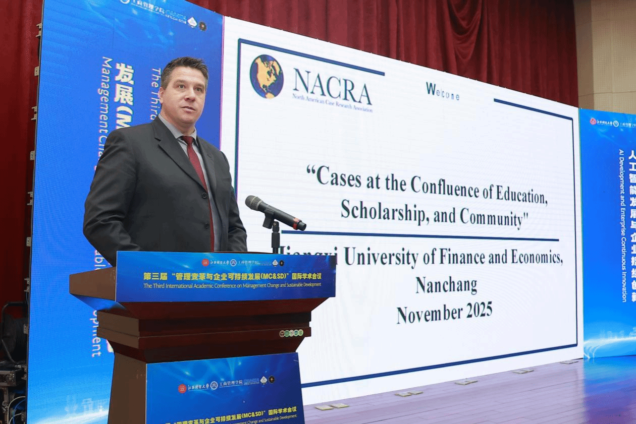 11月14日至15日,第三届“管理变革与企业可持续发展(MC&SD)”国际学术会议在江西财经大学麦庐园北区成功举办。本次会议以“人工智能发展与企业持续创新”为主题,由江西财经大学主办,工商管理学院承办,并联合北美案例协会(NACRA)、国际案例研究协会(ICRA)、丹麦奥尔堡大学商学院等机构共同举办。会议吸引了海内外知名学者、企业家及政策制定者参与,通过主题演讲、专题论坛、平行分论坛及论文工作坊等形式,深入探讨人工智能驱动下企业可持续发展的路径与挑战。