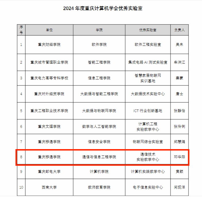 11月8日,通信技术实验教学中心在重庆计算机学会的年度评选中脱颖而出,荣获“重庆计算机学会优秀实验室”称号。这一荣誉是对实验室在科学研究、人才培养与社会服务等方面的权威认可,标志着实验室的建设与发展迈上了新的台阶。