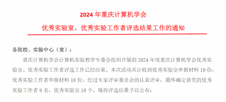 “重庆计算机学会优秀实验室”的评选旨在表彰在领域内做出突出贡献的实验室。此次获评“优秀实验室”是学会与社会各界对我们过去工作的肯定,更是对未来发展的鞭策。我们将以此为契机,继续深化科研创新,加强产学研合作,力争产出更多对国家和区域经济社会发展有贡献的成果,为重庆乃至全国的计算机、通信网络事业发展贡献力量。