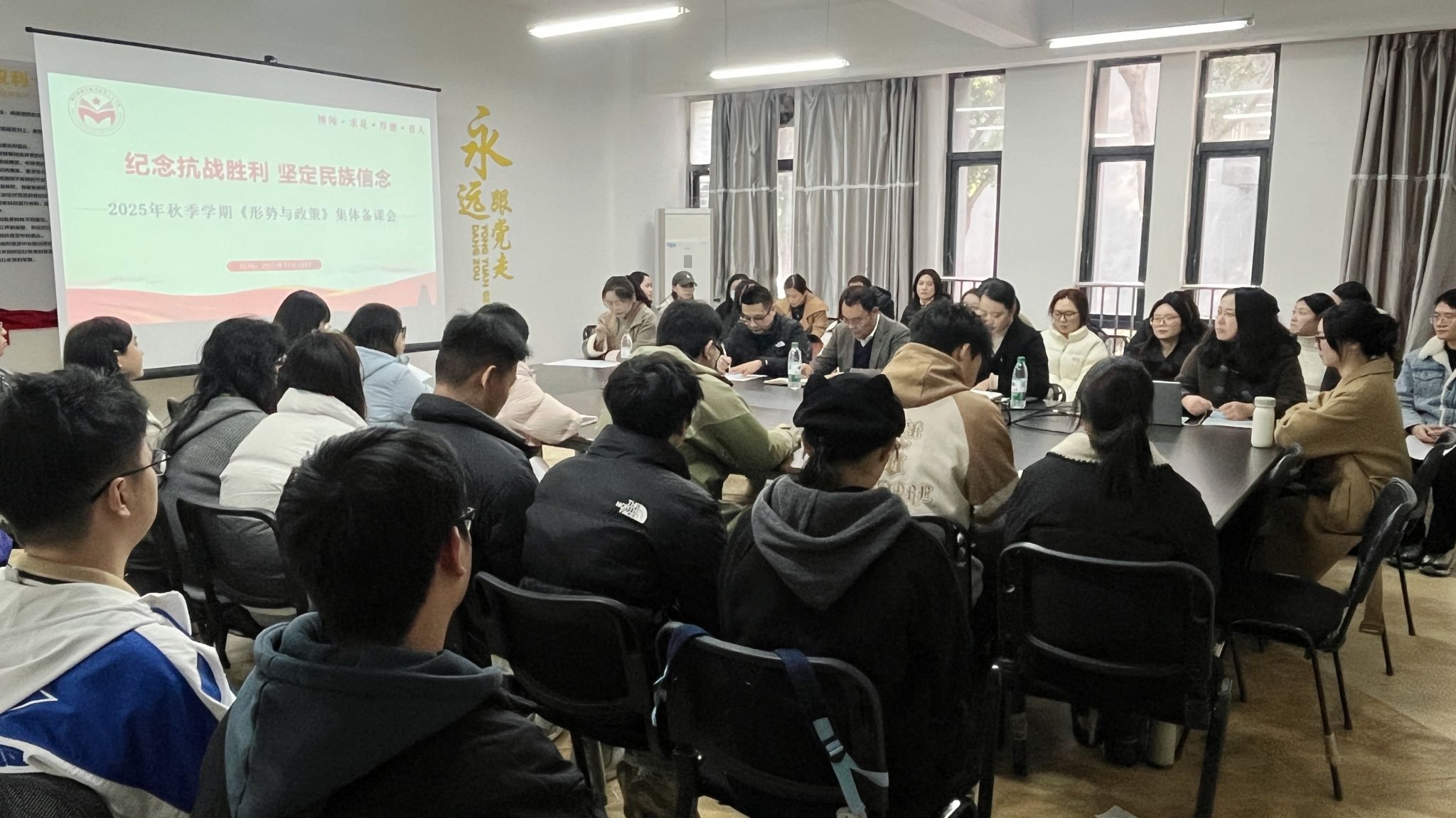 为深入贯彻落实《教育部办公厅关于开展2025—2026学年高校思政课课堂教学提升行动的通知》要求,切实推动思政课教学质量提升,11月19日下午,马克思主义学院组织开展了2025年秋季学期《形势与政策》集体备课会。本次会议由马克思主义学院院长邓燕主持,校党委书记、政府督导专员何先刚全程参与指导,课程组全体教师及学生代表参加。