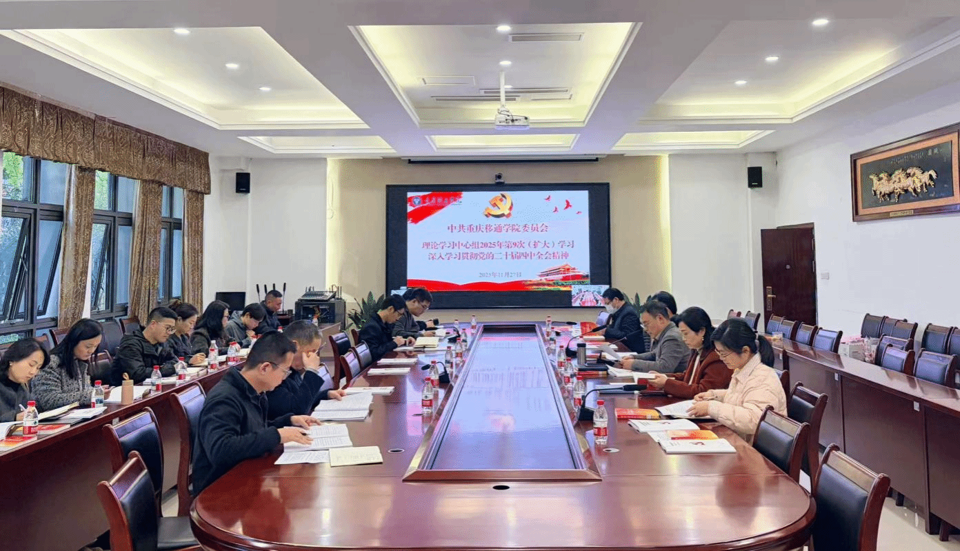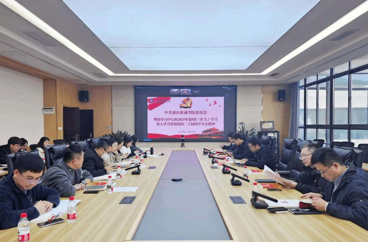 11月27日下午,重庆移通学院党委理论学习中心组召开2025年第9次(扩大)学习会议专题学习党的二十届四中全会精神。校领导班子成员、党委理论学习中心组成员、各直属党组织书记/副书记(专职副书记)等在双校区同步开展学习。校党委书记、政府督导专员何先刚同志主持会议并讲话。