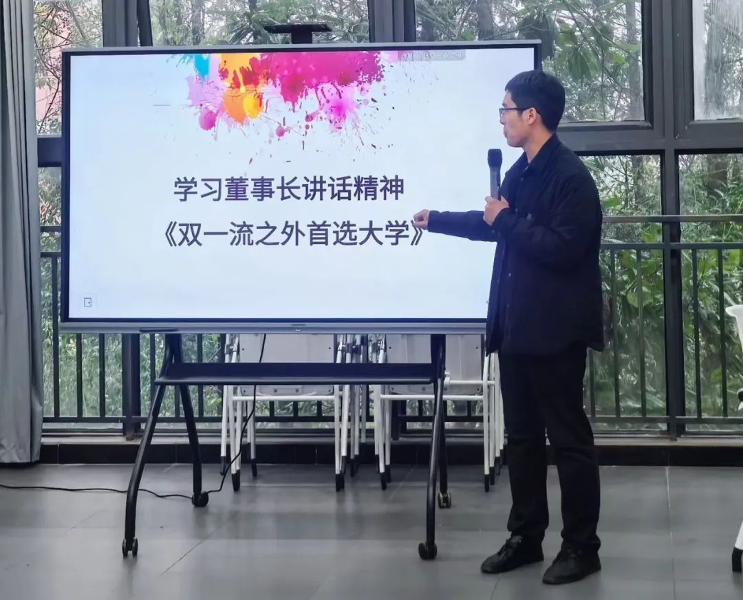 会上深入学习董事长彭鸿斌博士的教育理念,尤其是 “双一流之外首选大学”主题,并重点学习了《天涯龙门阵,鲤鱼跃龙门》、《那些花儿照样绽放》讲话精神。竞技体育中心于2025 年将围绕 “我们更体育” 目标,深化体育改革,提升教学质量,强化师资队伍建设,推动学校体育迈向更高水平。