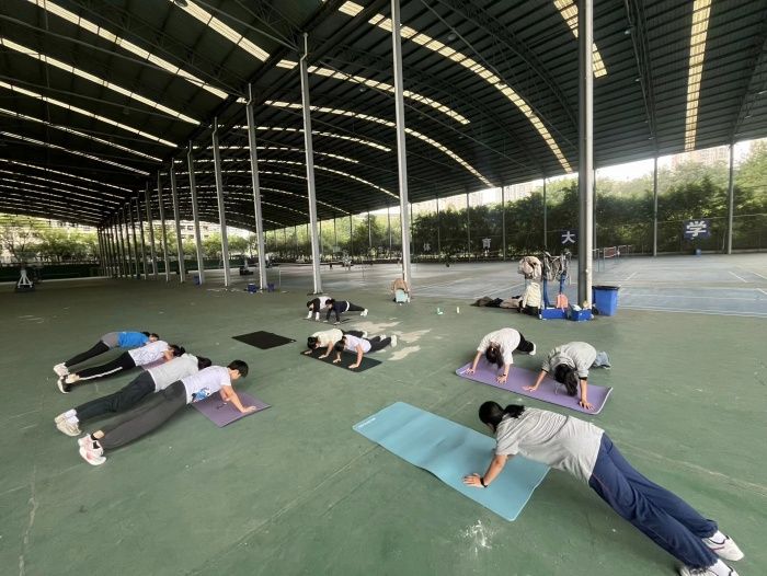 本周的体能恢复训练涵盖了有氧运动和力量训练两大板块。再有氧运动环节,我们安排了慢跑等活动,目的是增强队员们的心肺功能,提升整体耐力。慢跑时,队员们以适宜的速度绕操场进行,逐步适应训练强度,同时在教练的专业指导下,调整呼吸,保持节奏。而力量训练,我们着重开展了深蹲、腹背肌等基础练习,集中强化腿部、手臂及核心肌群的力量,为啦啦操中的复杂技巧与托举动作打下坚实基础。