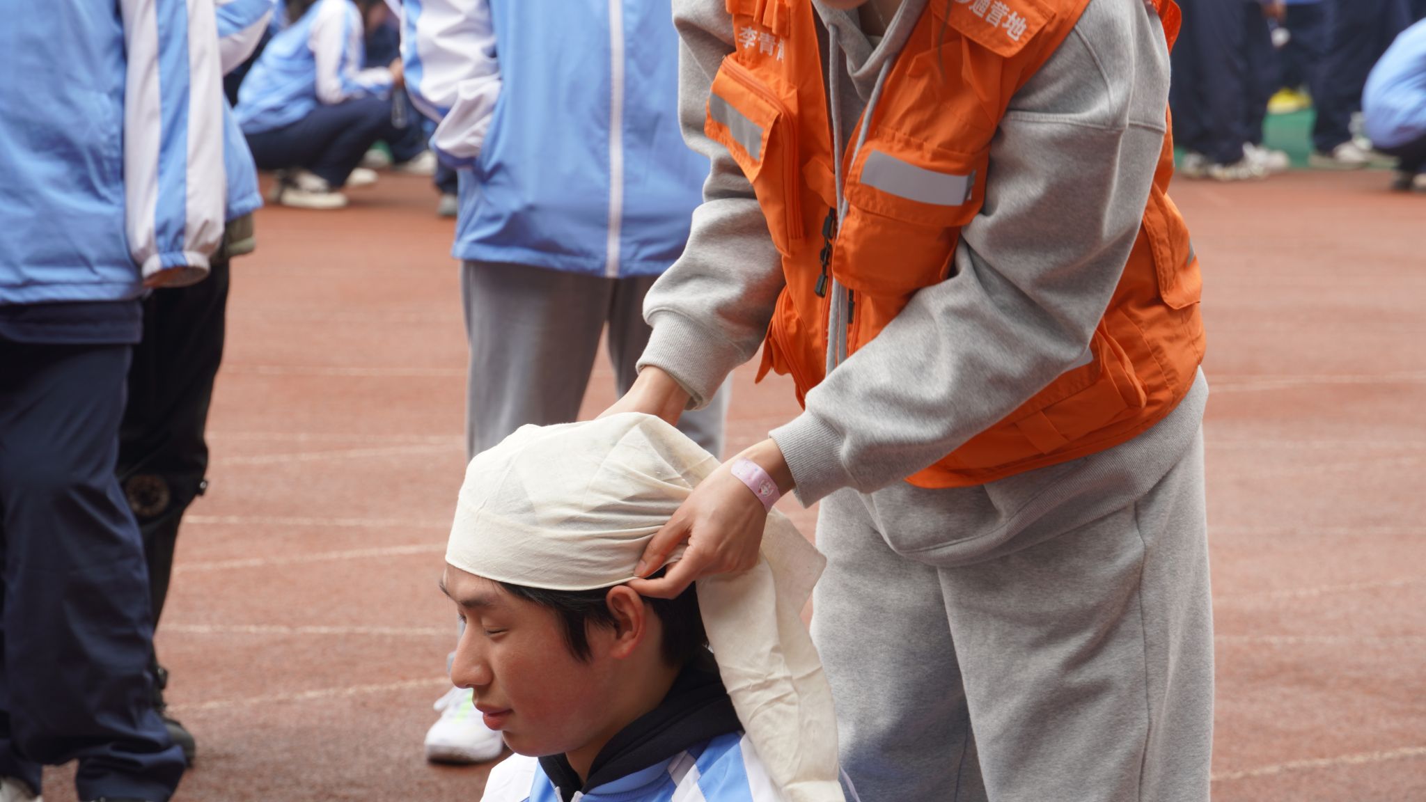 针对不同伤口的处理,教官还展示了环形、螺旋、“8”字等多种包扎技巧。学生们两人一组,互相练习绷带与三角巾的使用,现场气氛热烈有序。“包扎不仅是技术,更是对伤者的心理安抚。”培训师强调,冷静应对意外伤害是急救的关键原则之一。