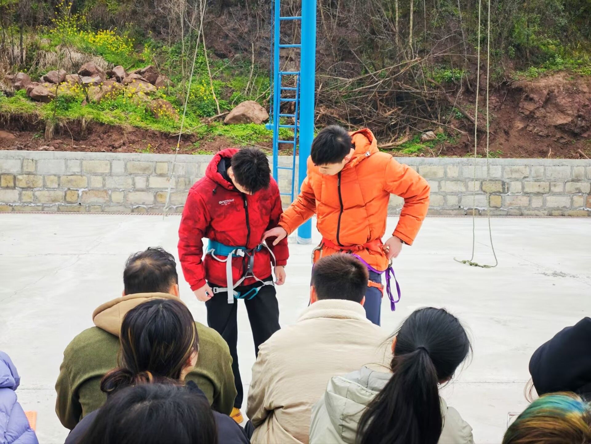 2025年2月23日,重庆移通学院营地教育中心迎来大健康管理学院2024级体育经济与管理专业1-4班全体学生,正式开启为期三天的拓展训练课程。本次课程以“挑战自我、凝聚力量”为核心目标,通过信任背摔、高空断桥、攀岩等经典项目,全面锤炼学生抗压能力、团队协作精神与问题解决能力。