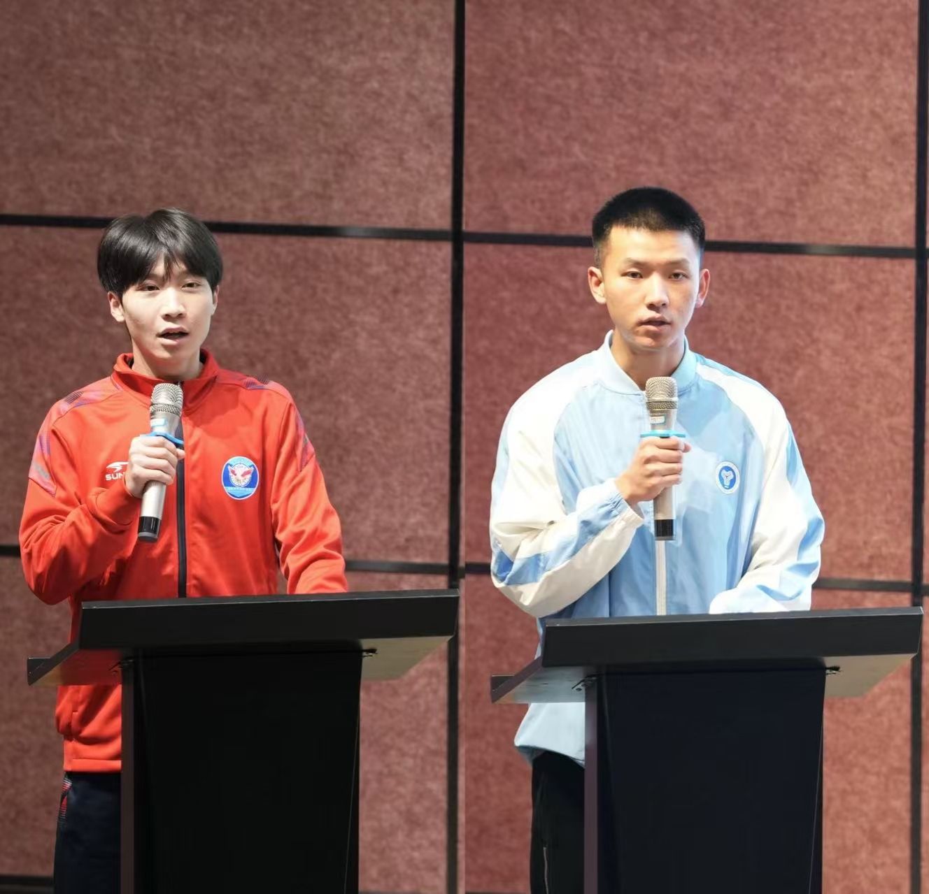 随后,男足队员张跃琪代表老队员发言: “作为一名老队员,我见证了许多同伴从懵懂走向成熟的过程。希望你们珍惜这个机会,团结一心,勇敢迎接未来的挑战。”老队员深情回顾了在校队的成长历程,分享了宝贵的心得体会,表达了对新队员的热烈欢迎和殷切期望。接着,铁三队的新队员孙鑫代表新队员发言。他激动地表示:“加入校队是我人生中的一个重要时刻,我将全力以赴,不辜负大家的期望。”新队员满怀激情地表达了对校队的向往和对未来的美好规划,展现了他们积极向上的精神风貌。