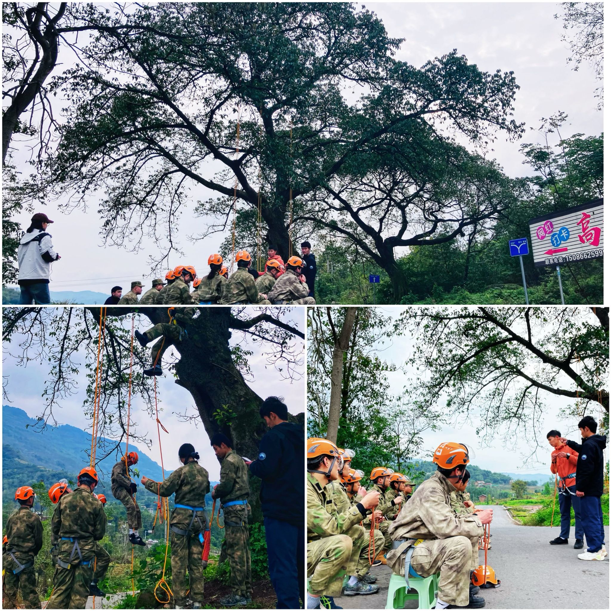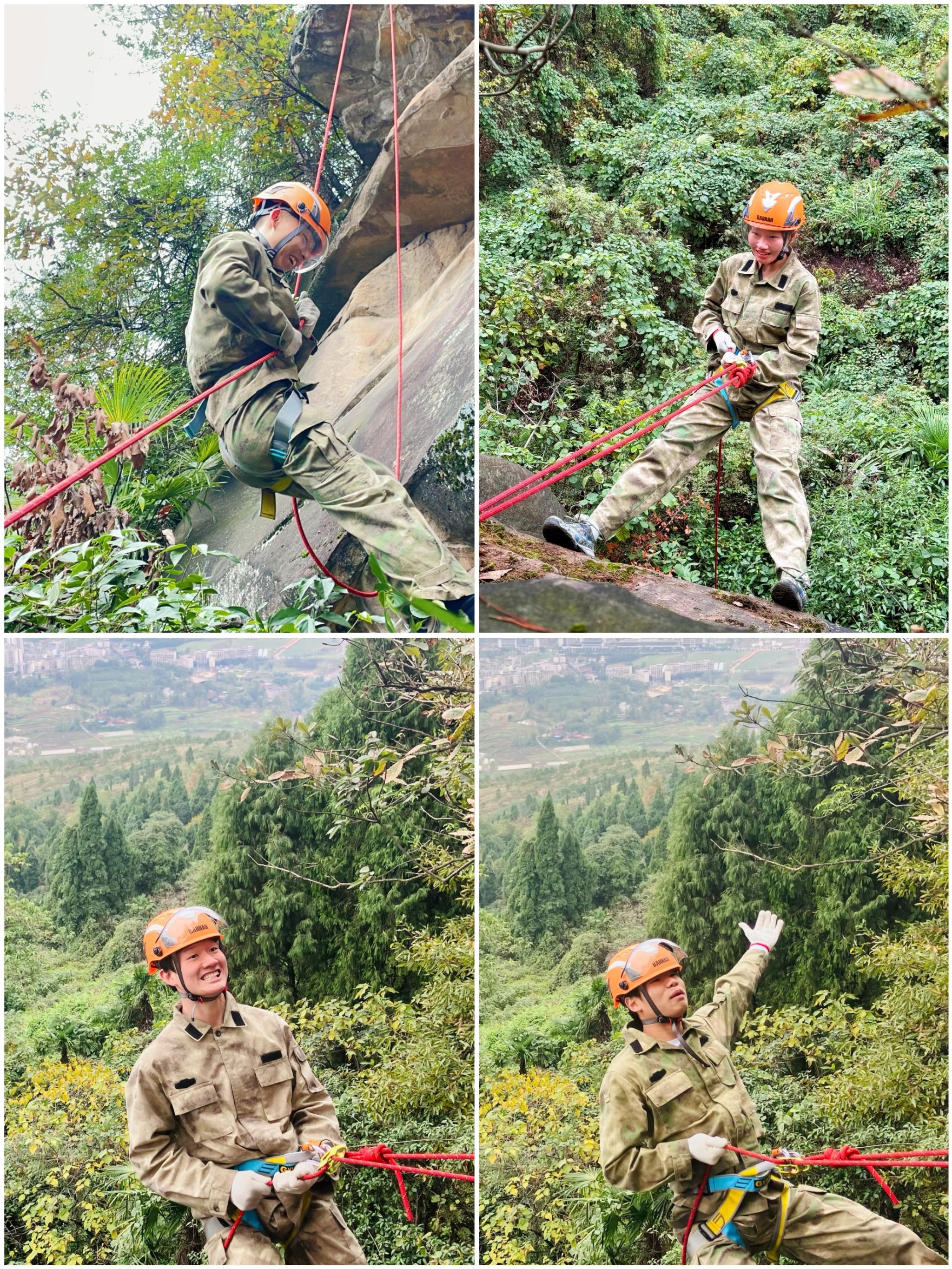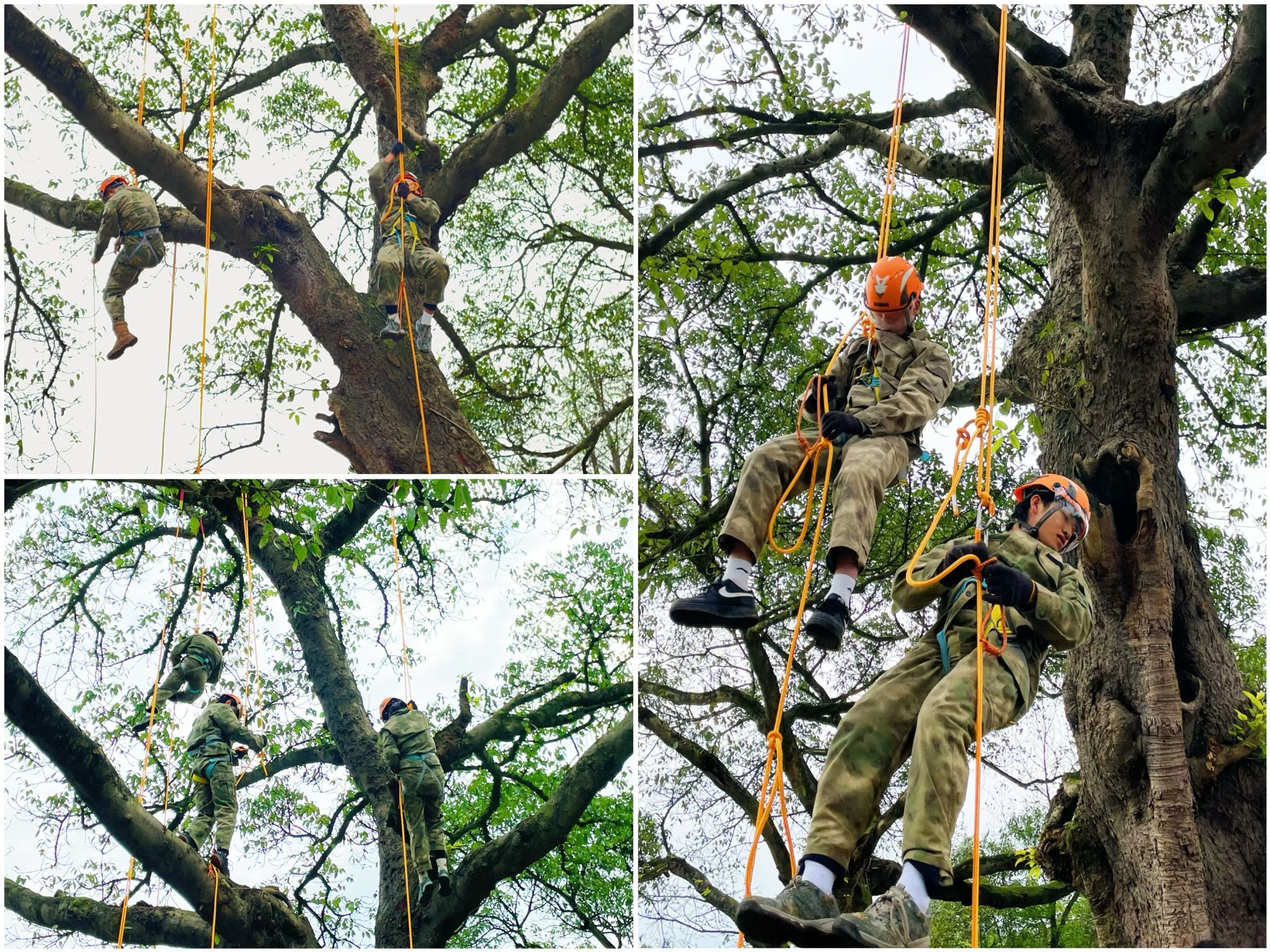 近20米垂直岩壁崖降,让学员们面临前所未有的挑战。所有学员都是第一次接触崖降,在教练的悉心指导下,他们克服恐惧,勇敢挑战自我,全员成功迈出那关键一步。攀树项目既是力量的角逐,更是技巧的交锋。在这个充满挑战的项目中,学员们充分展现出顽强的毅力和拼搏精神。攀登过程中,学员们有条不紊,专注而坚定地朝着树巅迈进,他们巧妙运用各种技巧,合理分配体力,一步一步征服高度。凭借坚韧不拔的意志和团队的鼓励,最终成功攀上树巅,收获满满的成就感和对自我的全新认知。