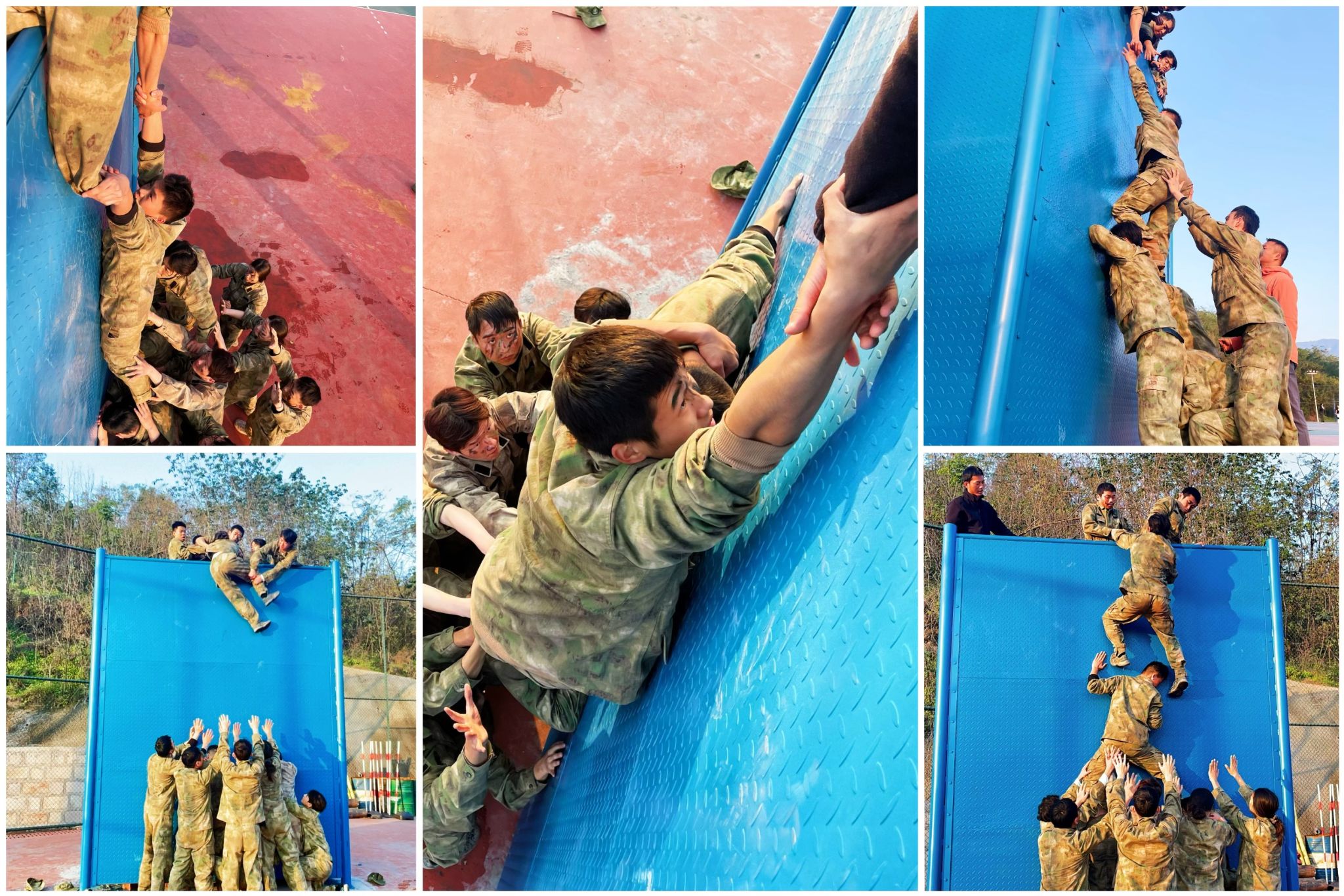 学员们身着迷彩服,手持装备,在丛林中展开激烈的野外CS战斗。他们为了队伍的胜利奋力拼搏,展现出极高的团队凝聚力与协作能力。而在训练营最后的海难逃生墙项目中,学员们相互信任、相互支持、团结协作,共同越过这道象征着困难与挑战的墙壁。