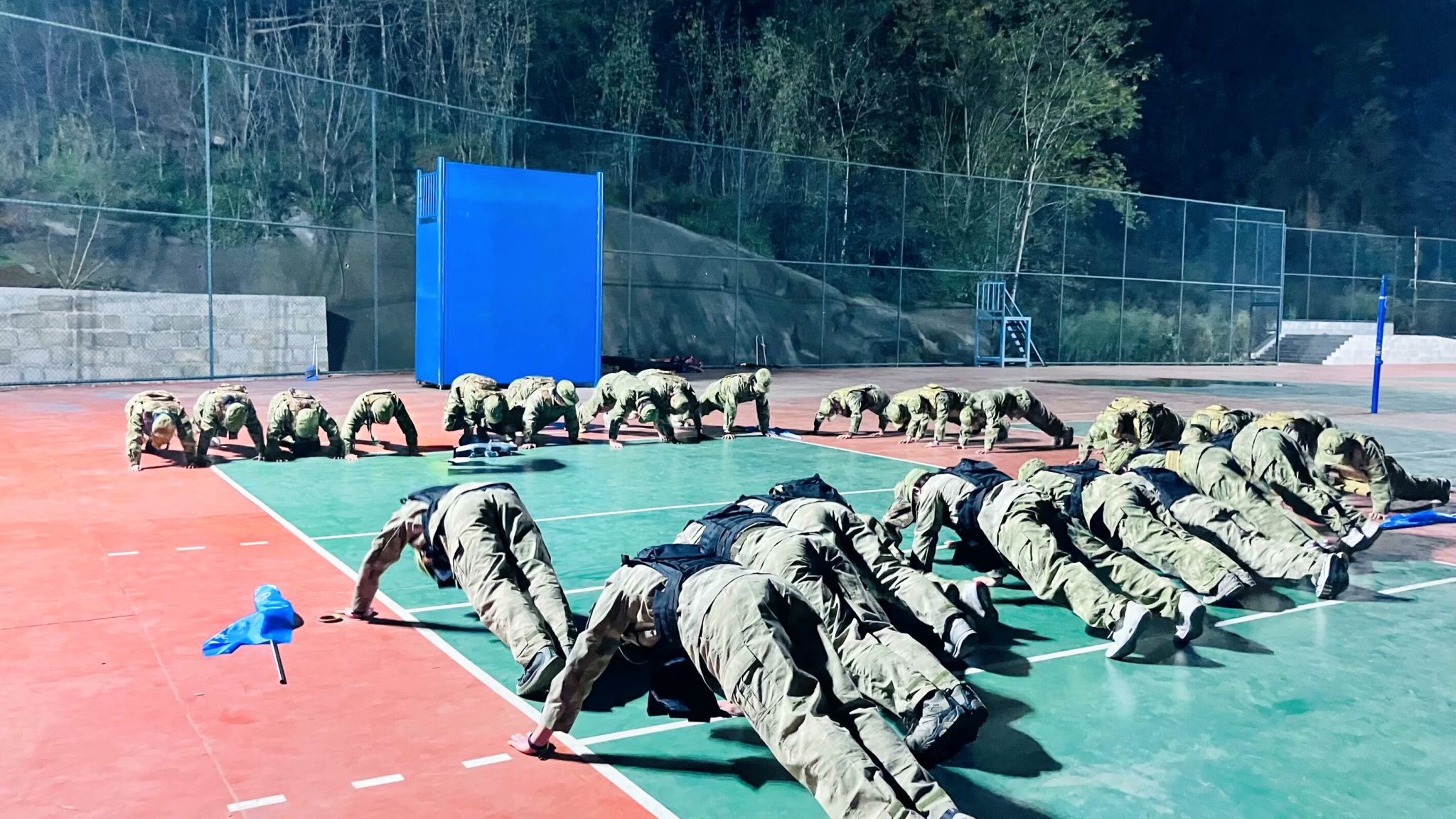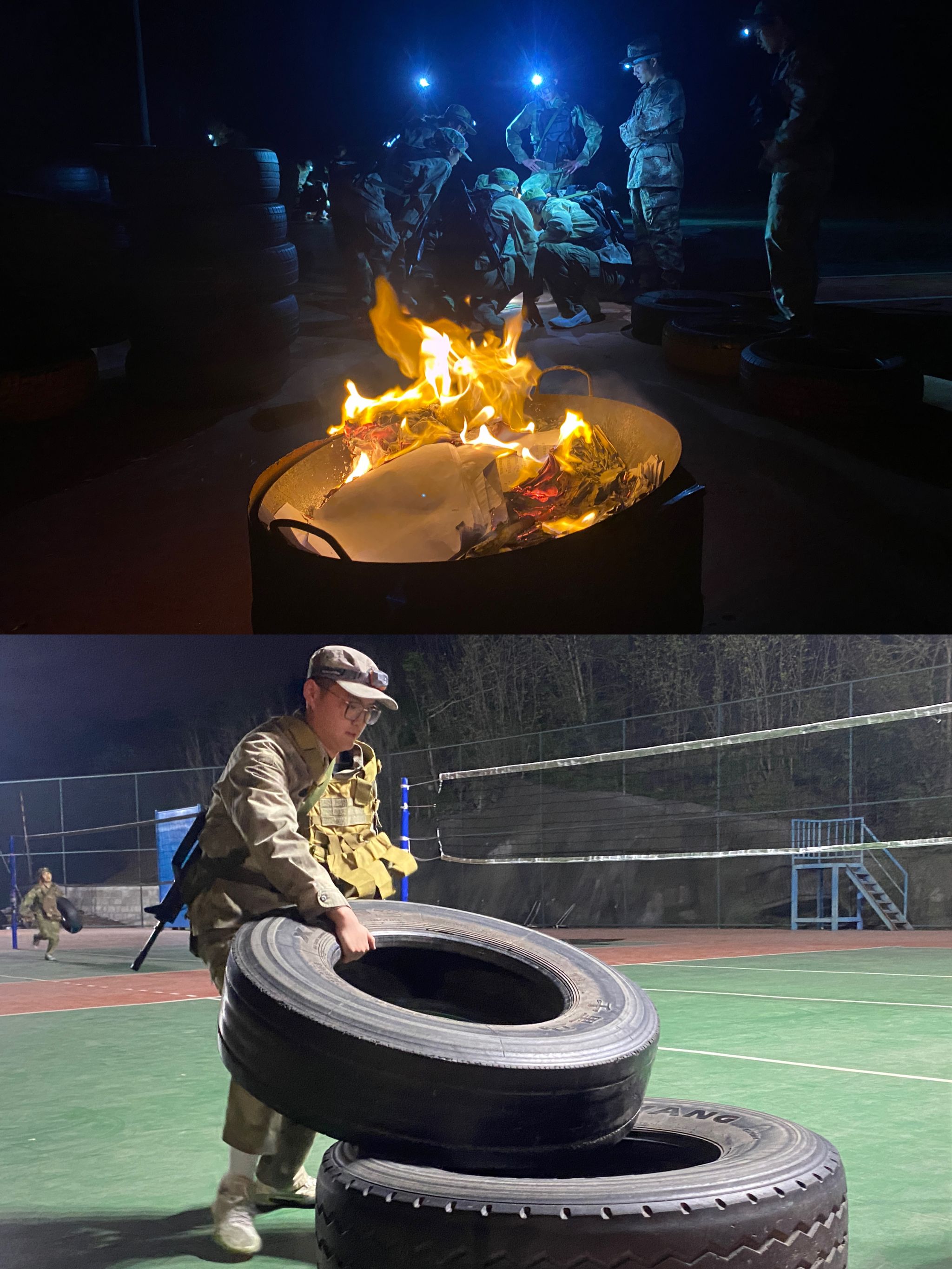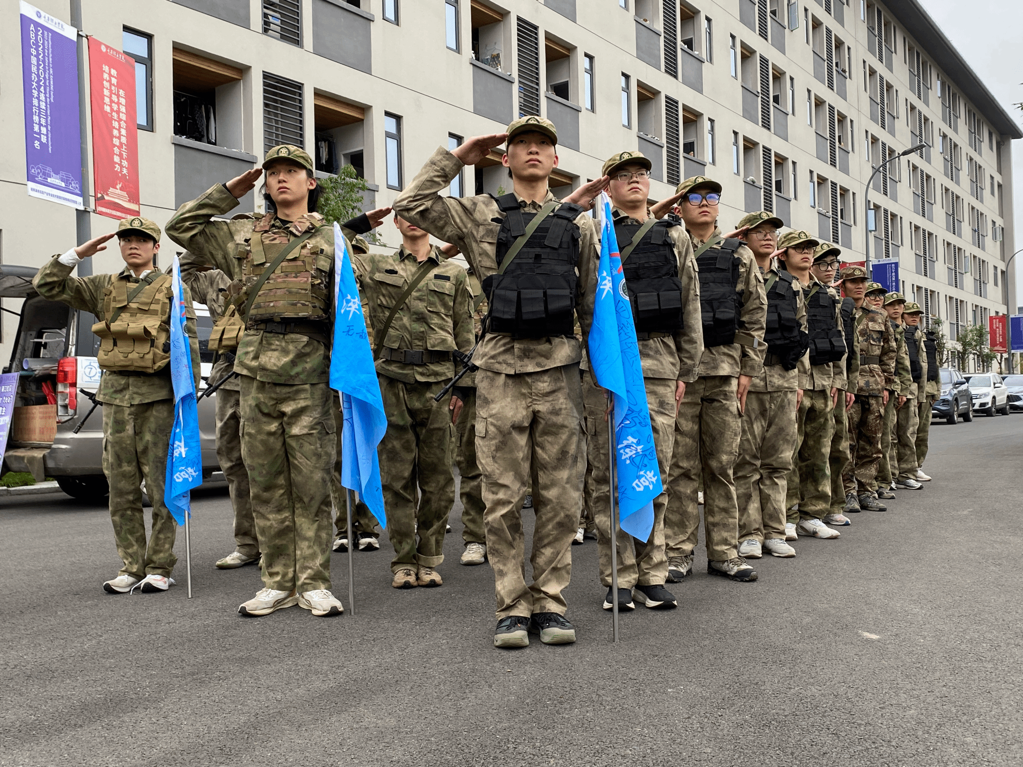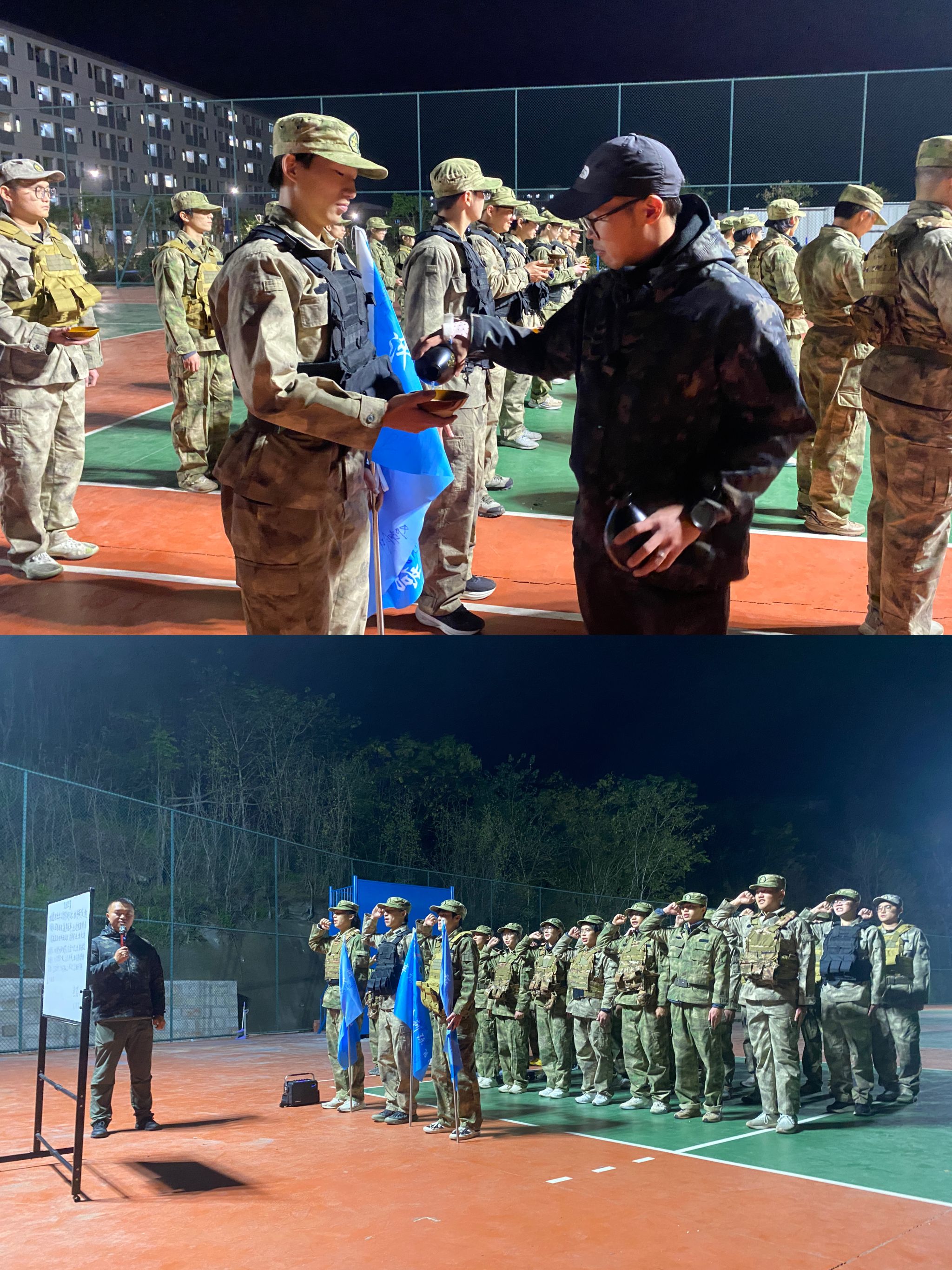 团队圣塔、轮胎战争和队列训练项目更是对团队执行力、沟通能力和意志力的全面考验。在团队圣塔项目中,队员们集思广益、分工有序,从手忙脚乱到井然有序,团队意识在队员心中悄然发生变化。轮胎战争中,队员们面对巨大的挖掘机轮胎,没有退缩,而是战意昂扬,分工协作,齐心协力地推动轮胎,每一次的用力都伴随着响亮的口号声,将肌肉上的酸痛转化为无穷的意志力。队列训练中,每一次整齐划一的动作都凝结着团队凝聚力和战斗力。