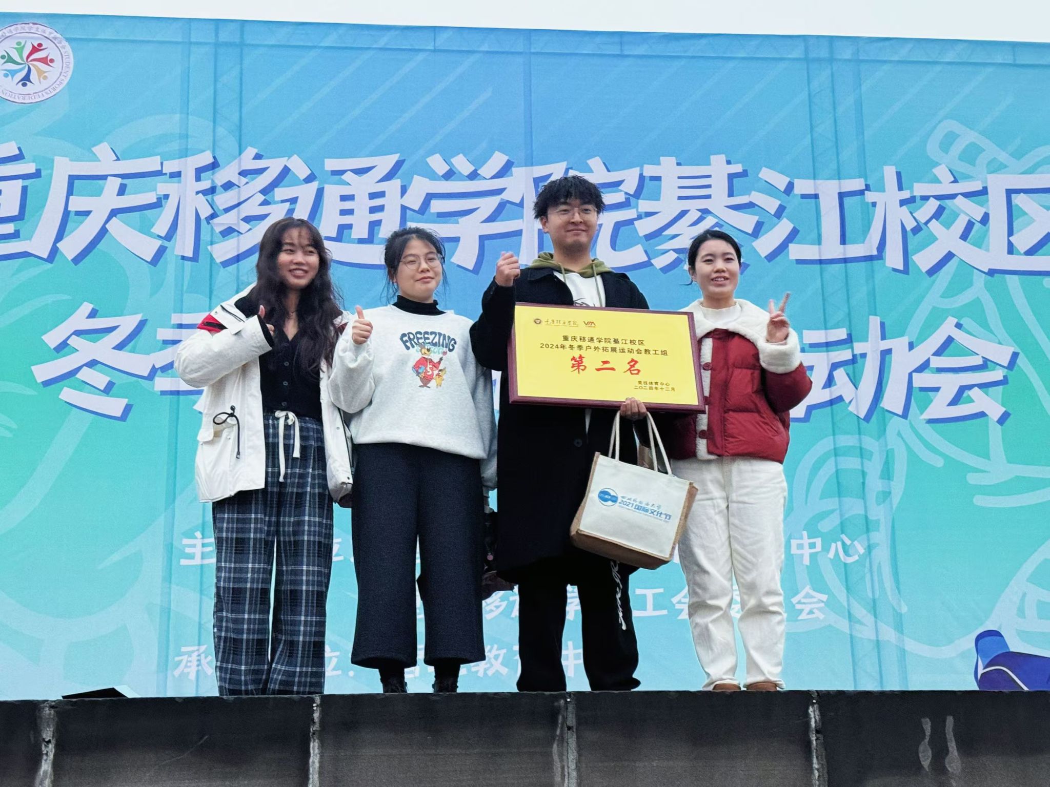 为进一步加强教师队伍的凝聚力,2024年12月4日,由重庆移通学院竞技体育中心、重庆移通学院工会委员会主办,营地教育中心、学生体育联合会承办,校飞盘队、校舟艇队、校户外运动队协办的重庆移通学院(綦江校区)首届冬季户外拓展运动会在田径场顺利举行。