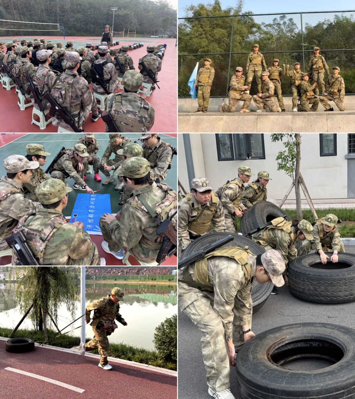 清晨,子师湖还在夜幕笼罩之中,学员们就已经精神抖擞地开始早操,昂扬的口号声驱散朦胧睡意,激发内心斗志与团队精神。学员们高举队旗,铿锵宣誓。个人的坚定信念与团队的凝聚力汇集成一碗“淬炼酒”,举碗一饮而尽,摔碗淬炼无悔!轮胎大战,更是对学员们体能和意志的双重考验。沉重的轮胎在古剑书院被一次次翻转,在子师湖被一圈圈拖动。即便汗水浸湿衣衫,他们的眼神依旧是坚定与不屈,不抛弃,不放弃,决不妥协!