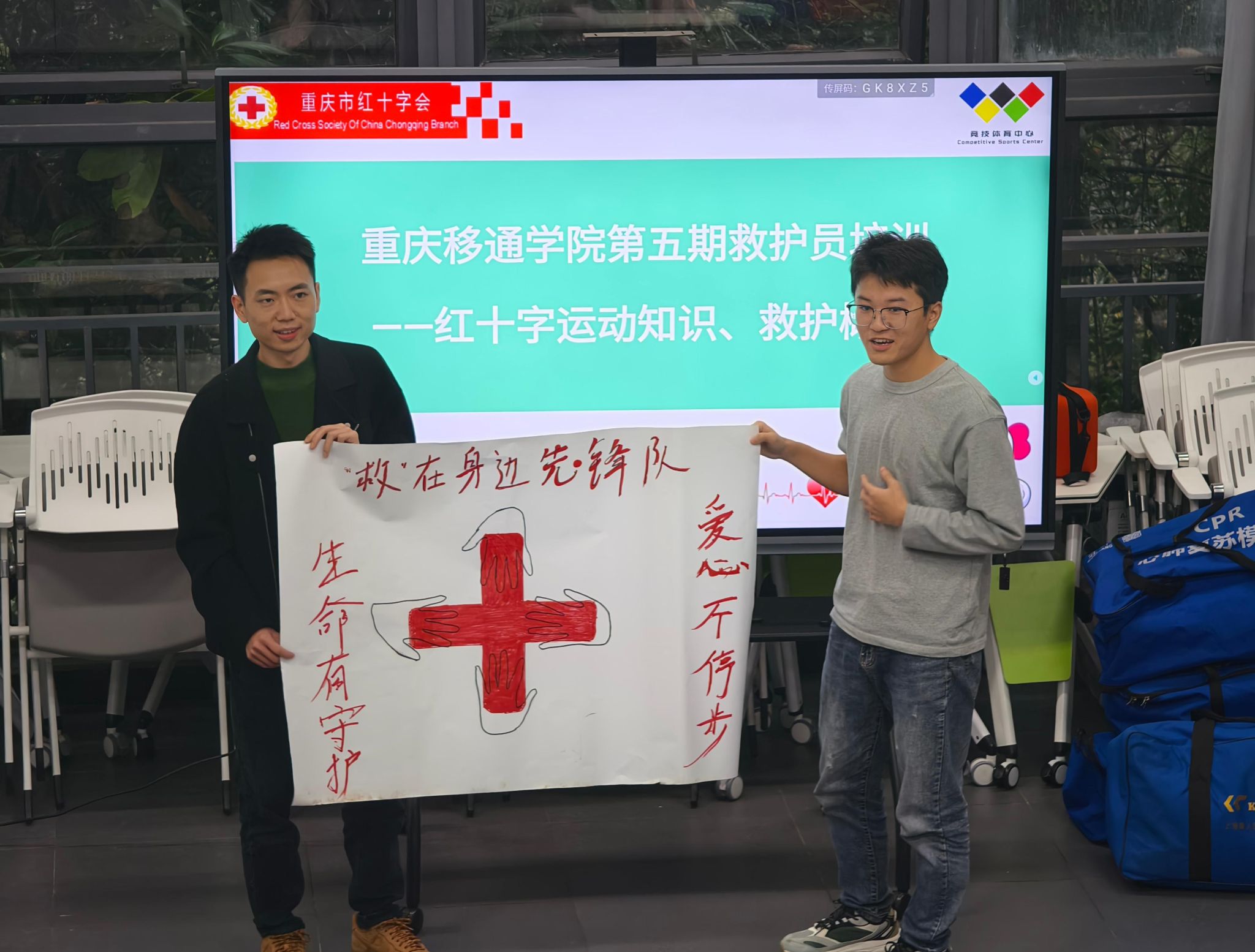 此次培训由专业的红十字会应急救护讲师团队授课,他们分别是重庆移通学院营地教育中心的程光涛、李华龙、余青河和田威四位教练,他们对应急救护知识有着丰富的经验。内容涵盖了心肺复苏、气道异物梗阻(海姆立克急救法)和创伤救护等常见急救知识技能。培训现场,讲师通过理论讲解、示范操作、模拟演练相结合的方式,生动形象地向学员们传授急救技巧。