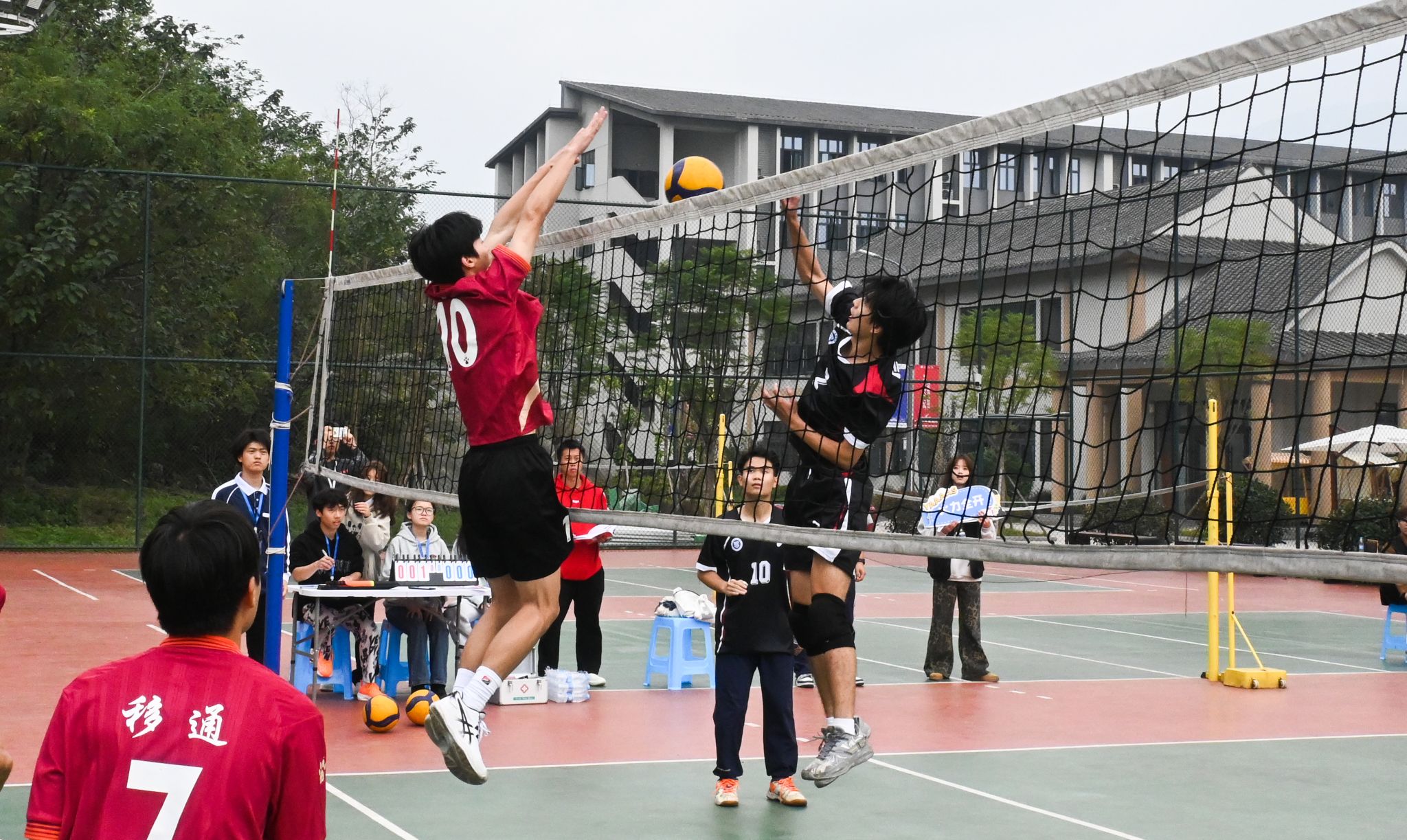 主攻手们的扣球力量惊人,角度刁钻,多次为球队赢得关键分数。每一次成功的扣球,都点燃了观众心中的热情之火,欢呼声、呐喊声震耳欲聋。双方毫不示弱,二传手凭借出色的组织能力,巧妙地调动着队友,一次次化解对方的进攻,并打出漂亮的配合得分。双方的精彩表现,将排球运动的魅力展现得淋漓尽致。