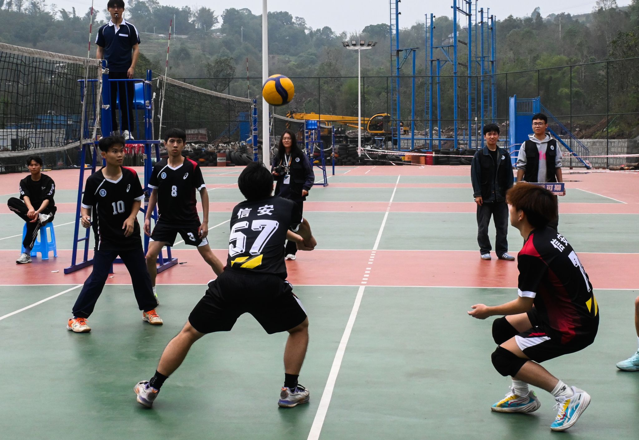 除了运动员们的精彩表现,赛场边的教练和替补队员们也同样充满热情。教练们全神贯注地观察着场上局势,不时地通过手势和呼喊为队员们传达战术指导。替补队员们则在一旁为队友加油助威,时刻准备着上场为球队贡献自己的力量。最终“Atoll男排”,“信安男排”,“野狼帮男排“,深藏blue女排”,“戏影女排”等队伍经过队友间的默契配合与坚持拼搏拿到排球比赛的胜利。