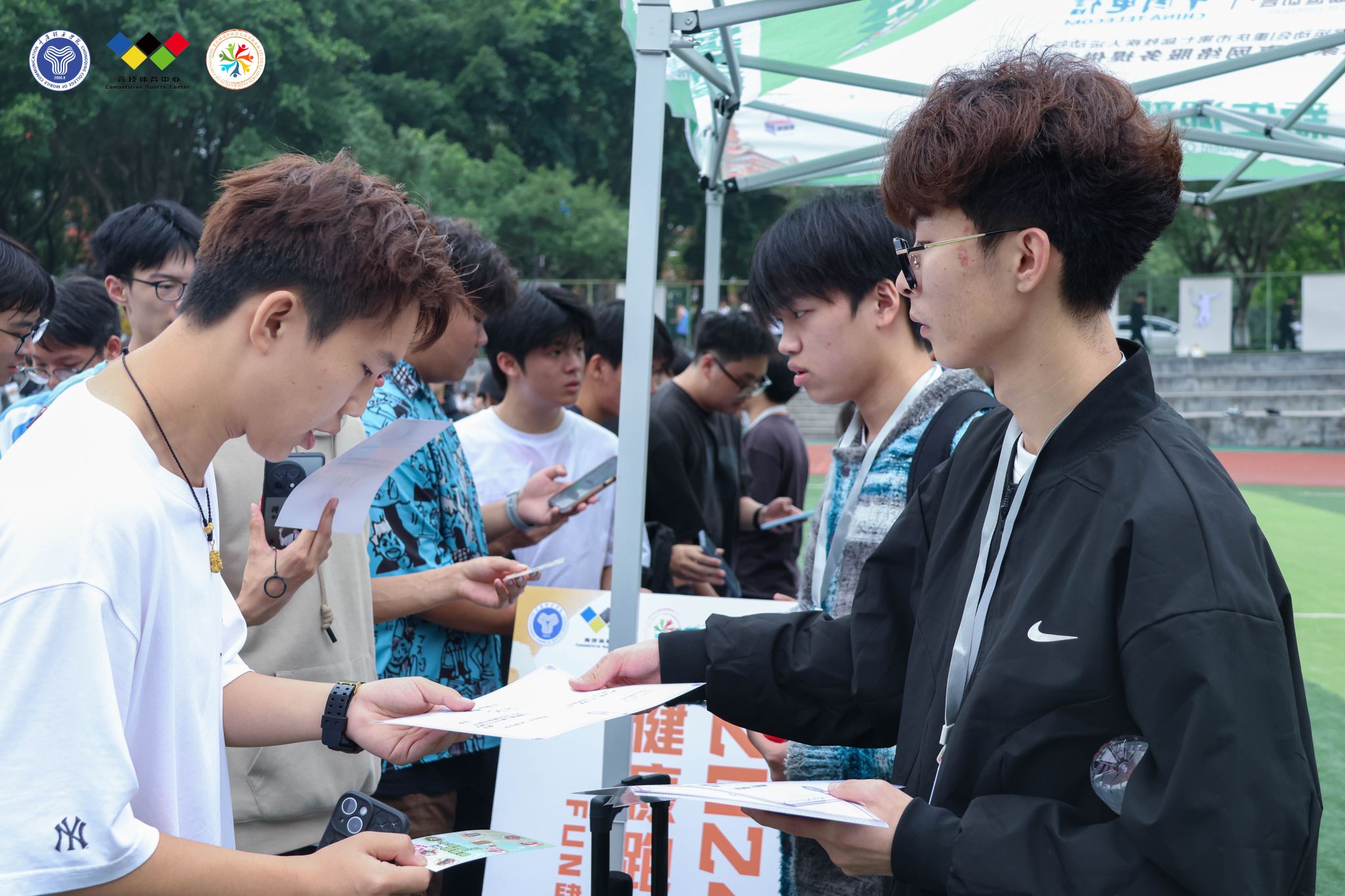 下午14:00,活动准时在南校区B区足球场拉开帷幕。现场气氛热烈,1500余名师生齐聚一堂,共同期待这场充满活力的健康跑活动。活动开始前,现场工作人员首先确认了所有参与者的保险情况,确保每位参赛者都能安全地参与到活动中来。随后,工作人员分发了集章卡,为接下来的活动做好准备。