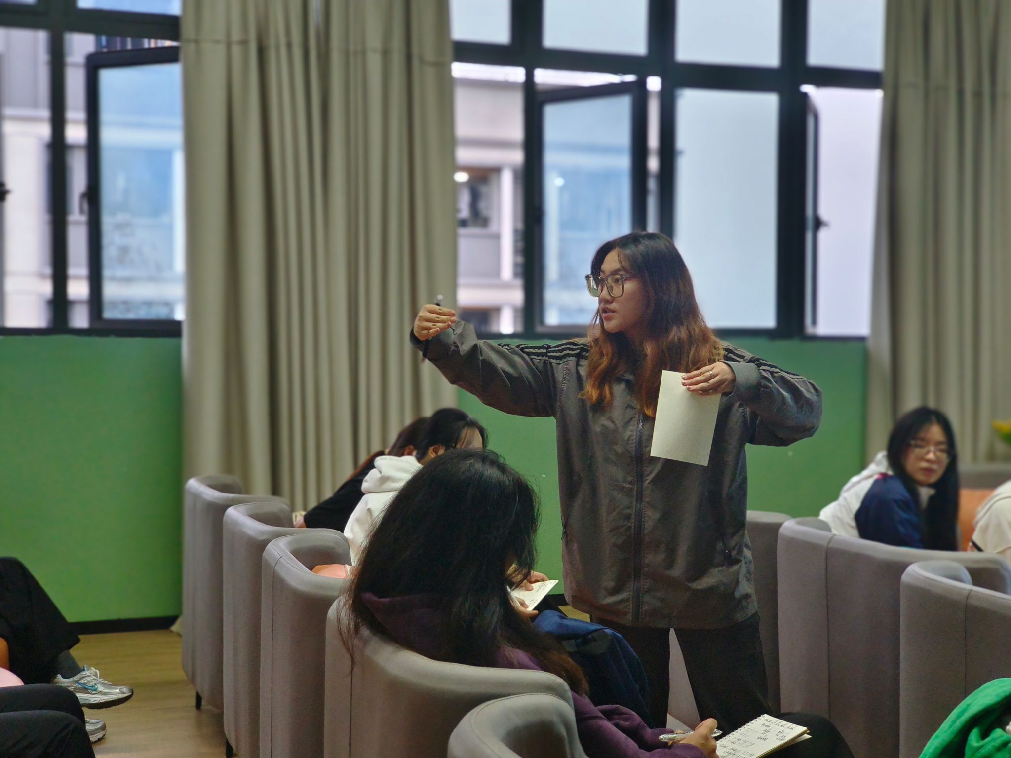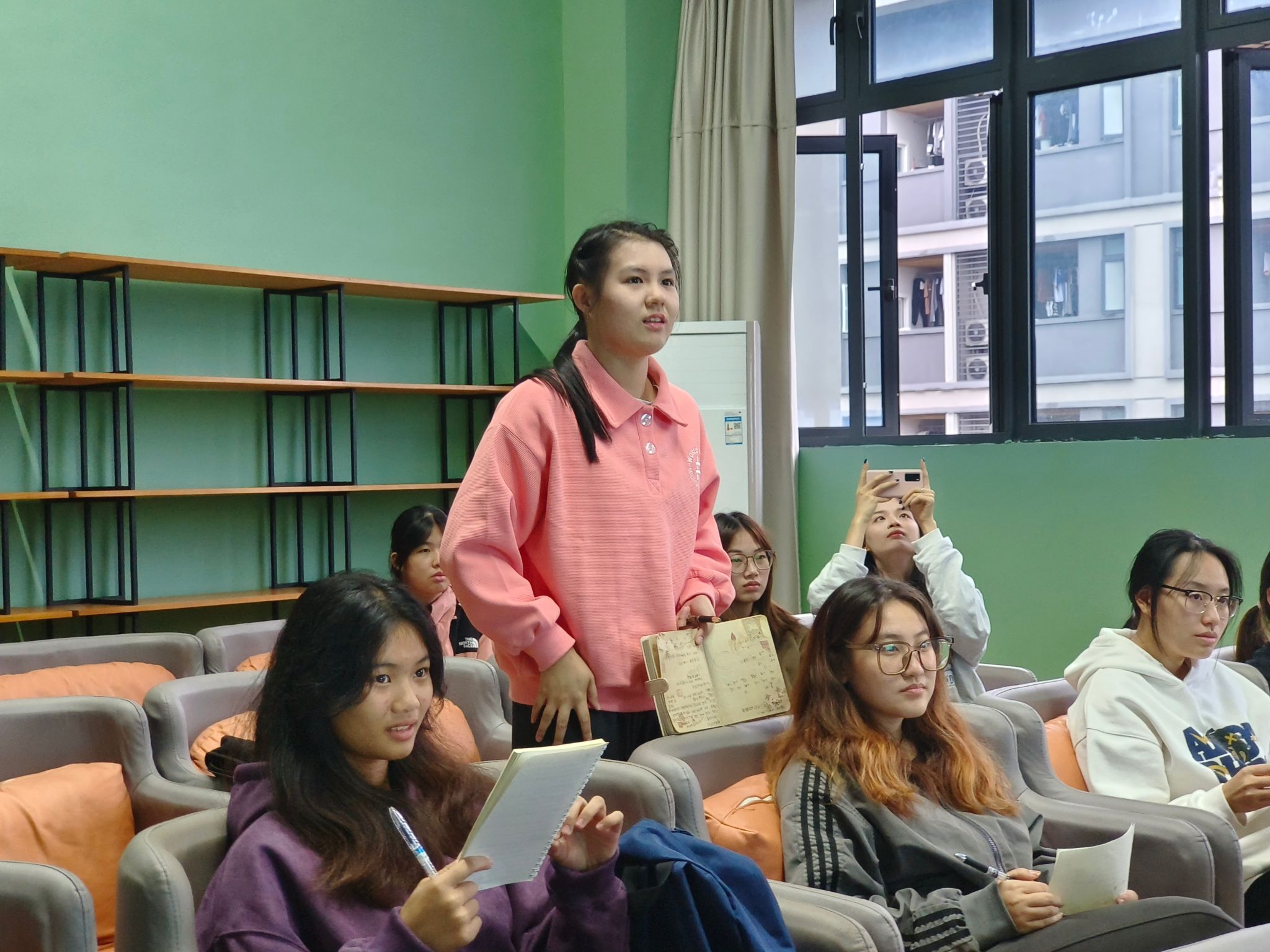 重庆移通学院校女子排球队于2024年11月1日下午13:30在横山书院的青年研习室展开了一场别具一格的排球教学活动。