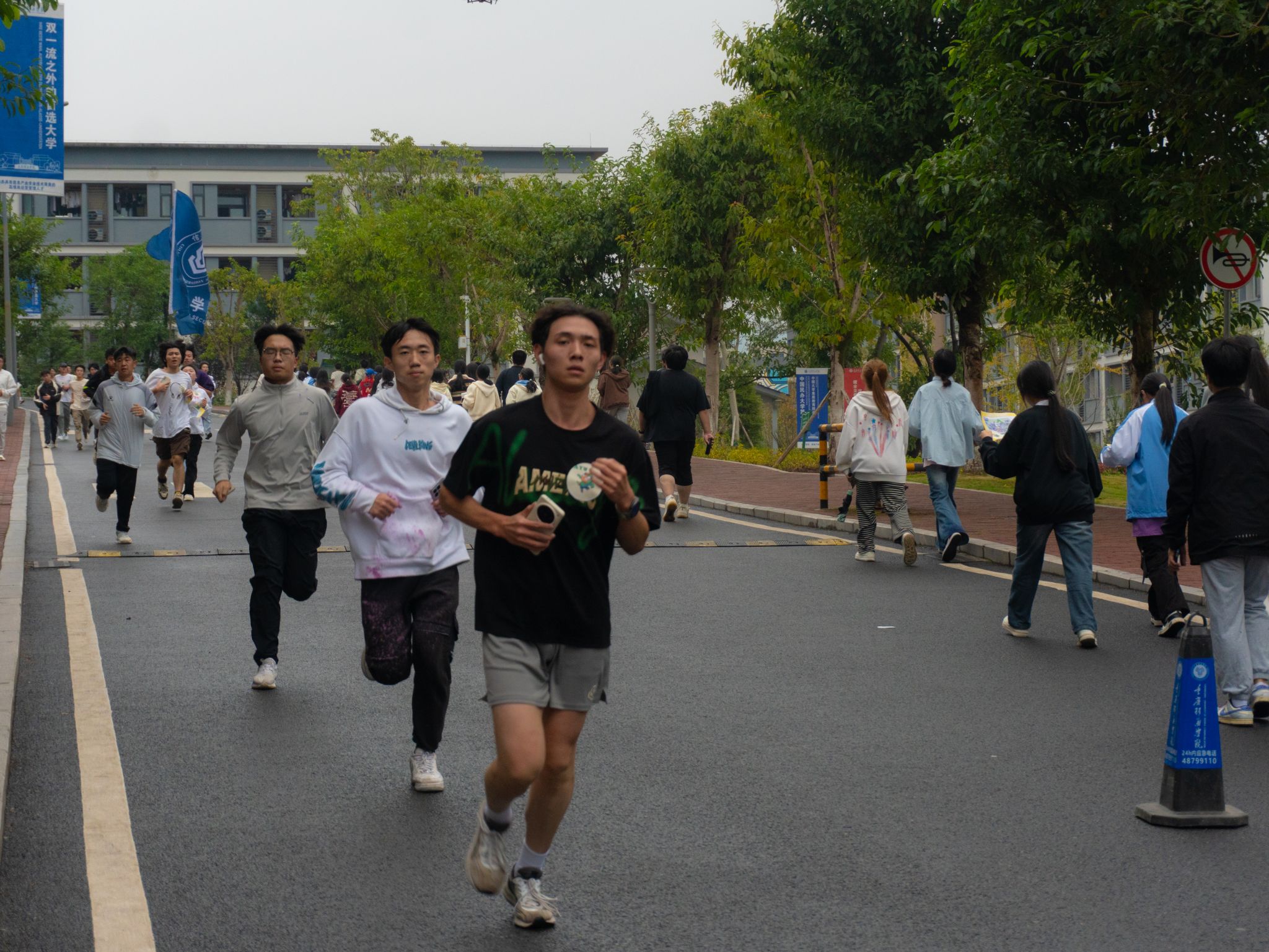 尽管阴云密布,但我步伐坚定,未曾停歇。因为对跑步的热爱,我选择了坚持。在这条赛道上,师生们肩并肩,心连心,相互扶持,共同挑战身体极限,追寻体育的真谛。每一次的自我超越,都让我们更加坚信:只要持之以恒,就没有达不到的终点。我们共同响应“人人运动,人人健康,移通人人马拉松”的号召,携手前行。